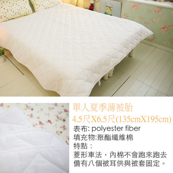 單人 4.5X6.5尺 四季薄被胎(135cmX195cm) 可水洗 精選材質 台灣製 棉床本舖 被胎