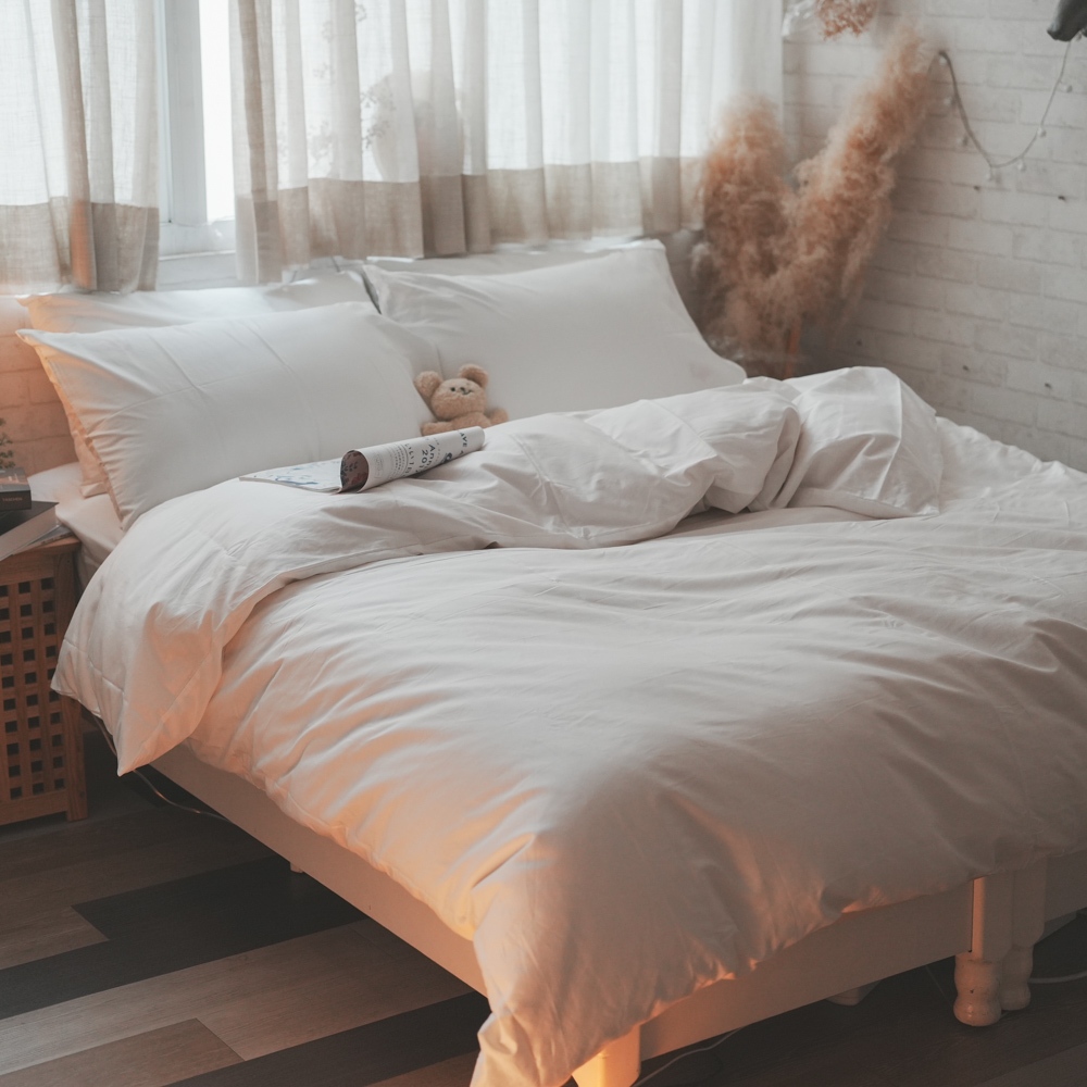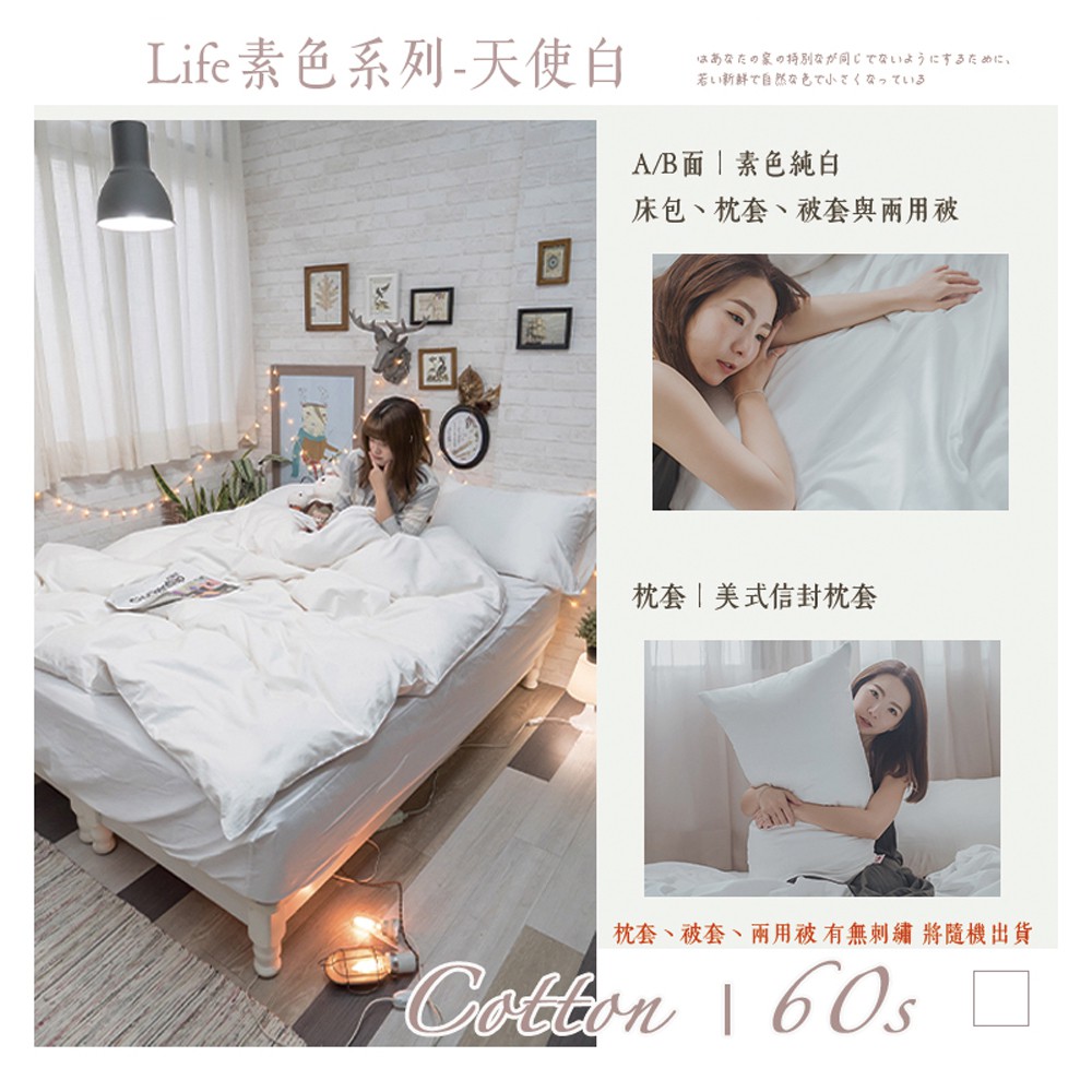 棉床本舖 天使白 Life素色系 60支精梳棉 柔軟升級 床包枕套組/兩用被組 100%純棉 台灣製 白色床包 飯店床包