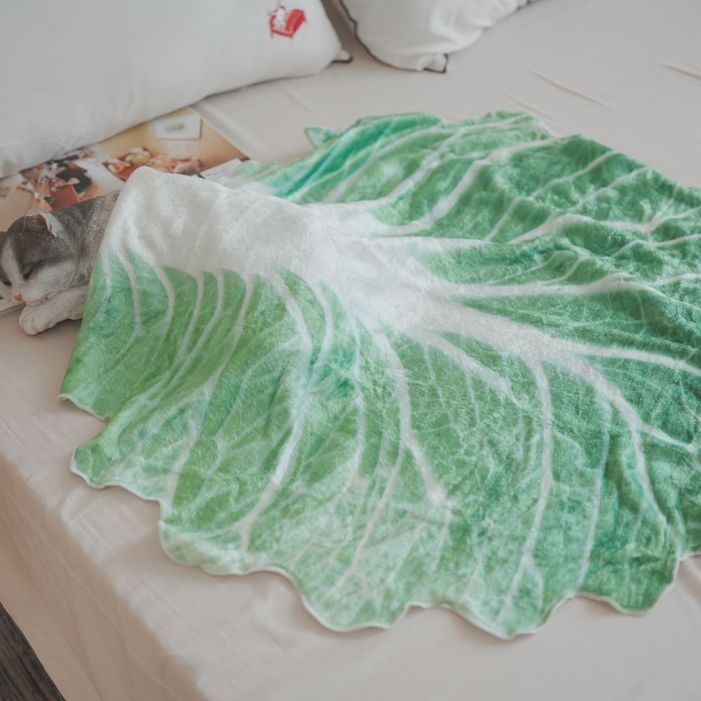 棉床本舖 小白菜毯 85x85cm(±5cm) 仿真有趣 可當包巾 新生兒禮物 白菜被 樹葉毯