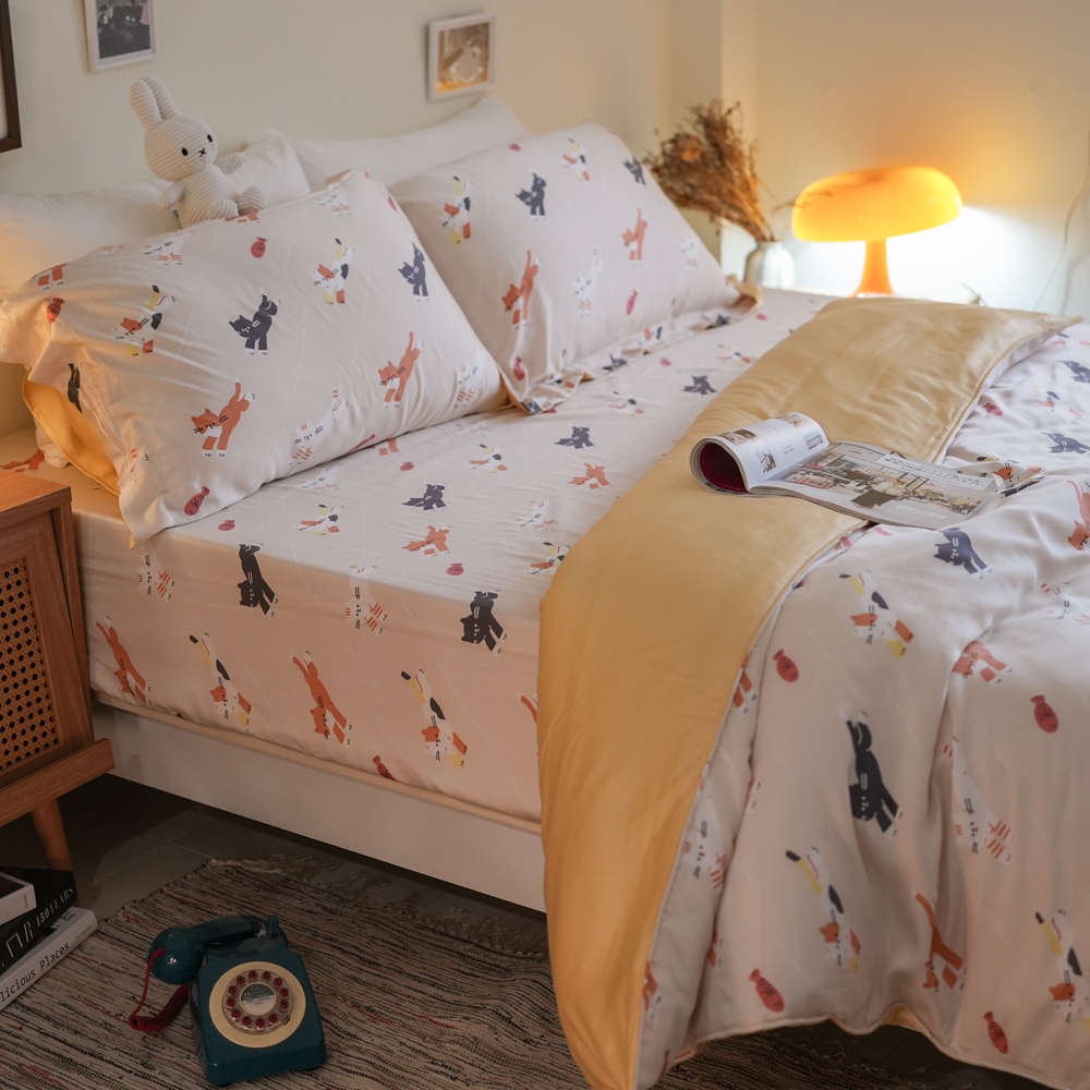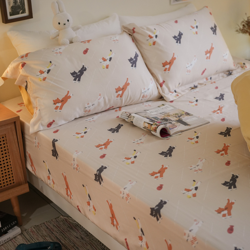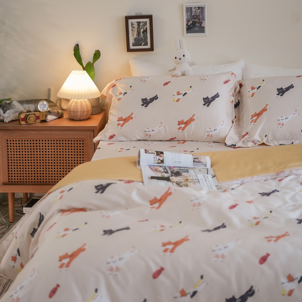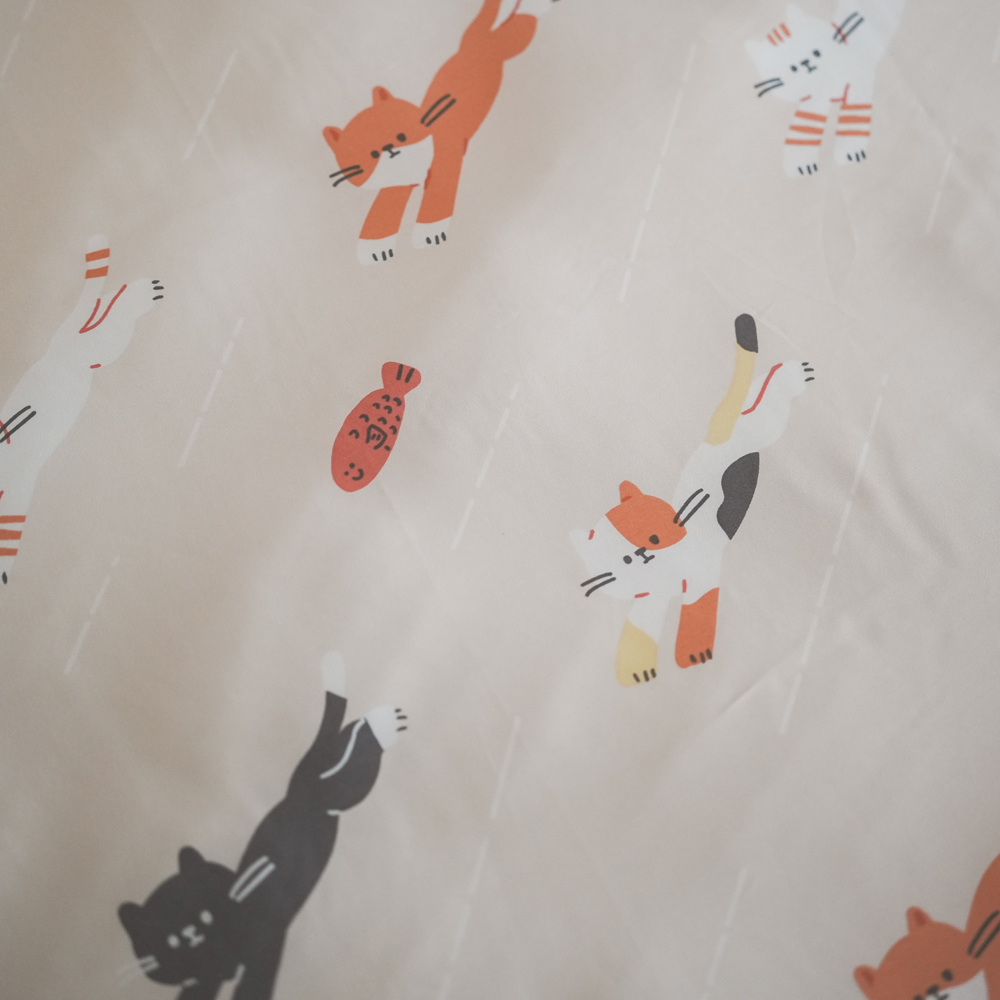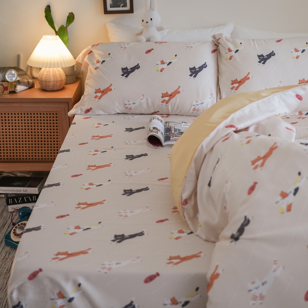 棉床本舖 貓貓魚 100%天絲™/60s床包/兩用被組 台灣製TENCEL™Lyocel天絲床組 小喵飛 超人貓 貓貓雨