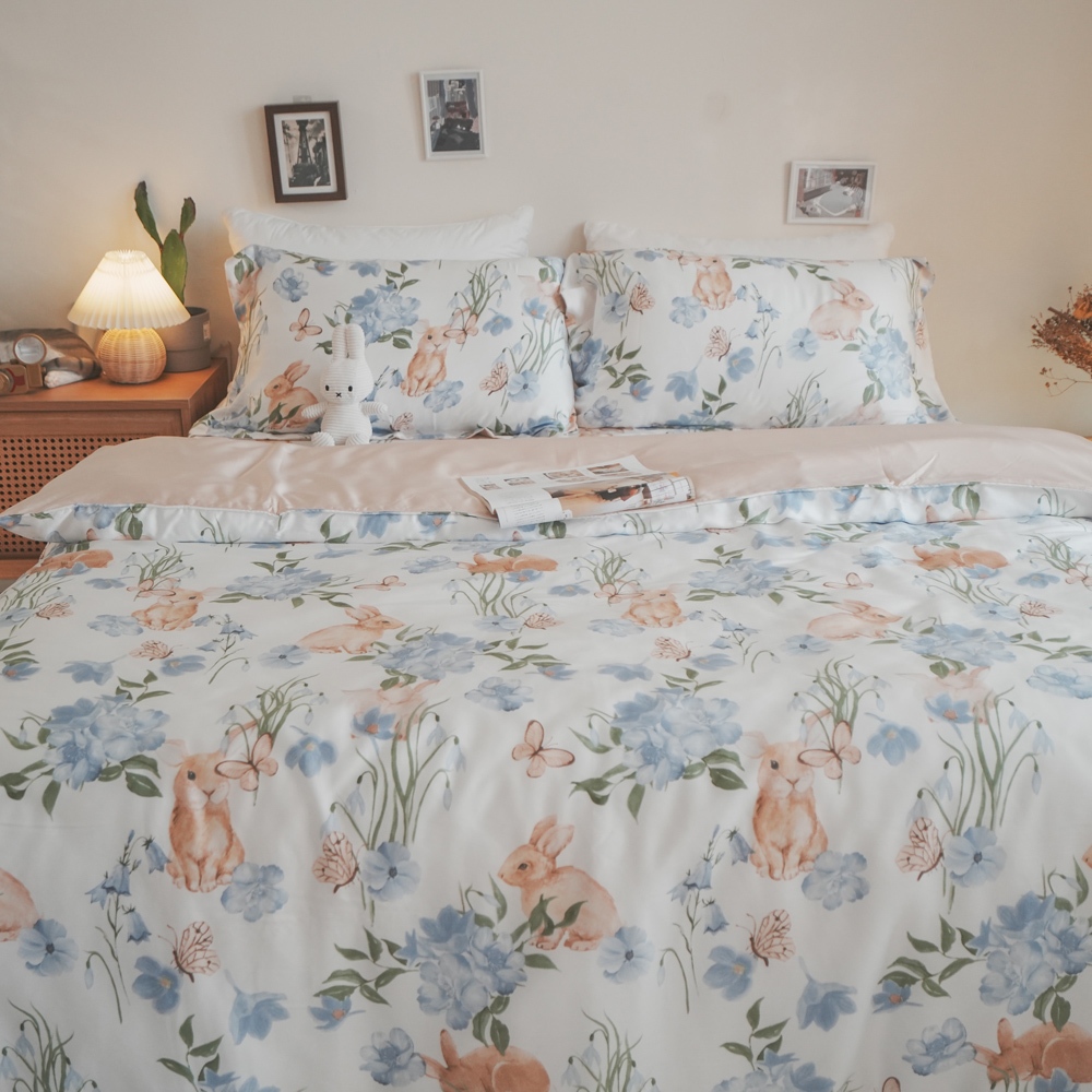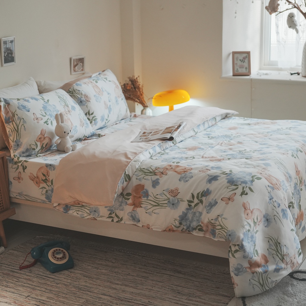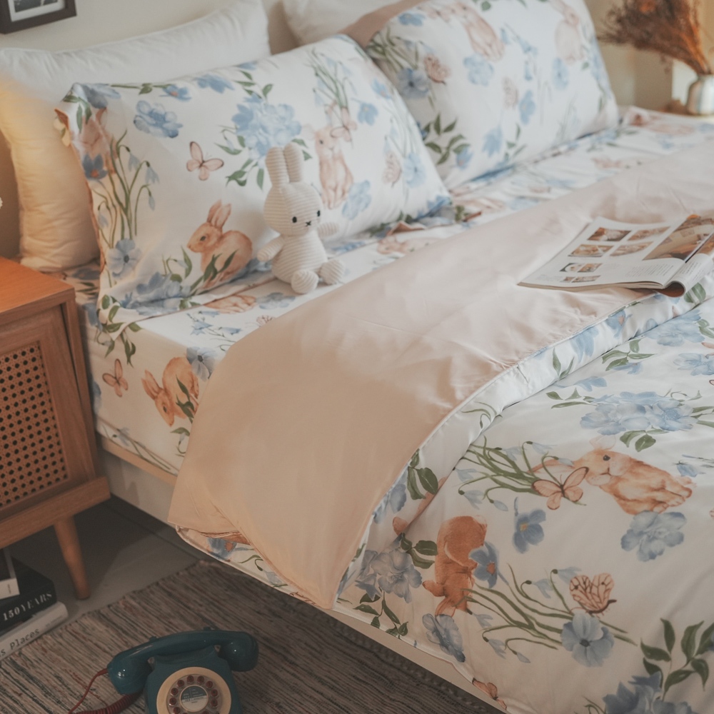 棉床本舖 ins風 歐風萌兔 100%天絲™/60s床包/兩用被組 台灣製TENCEL™Lyocel天絲床組 兔兔床包