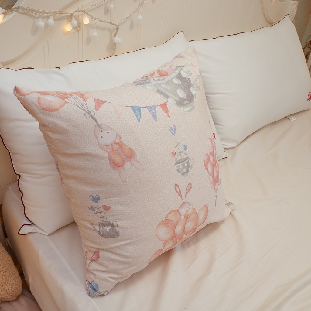 樂園氣球兔 純棉方抱枕 45cmX45cm 台灣製 復古 碎花 棉床本舖【超取限購一件】