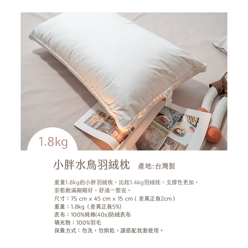 棉床本舖 小胖水鳥羽毛枕 1.8kg剛剛好的蓬鬆 支撐佳 台灣製