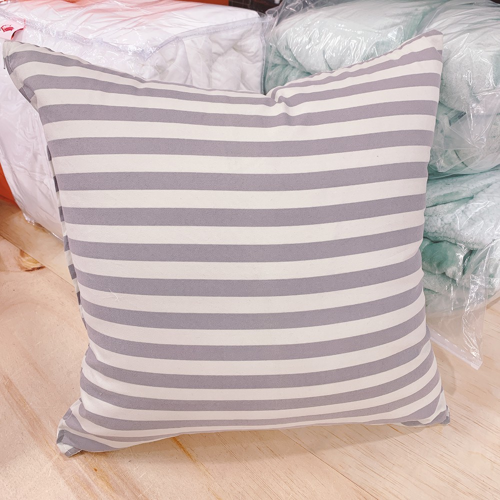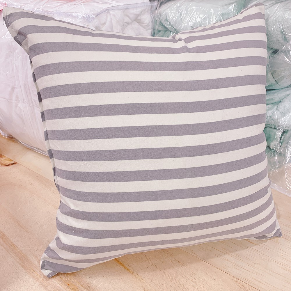 方抱枕 Line灰黑線條 磨毛材質 抱枕 枕芯超飽滿 台灣製 棉床本舖