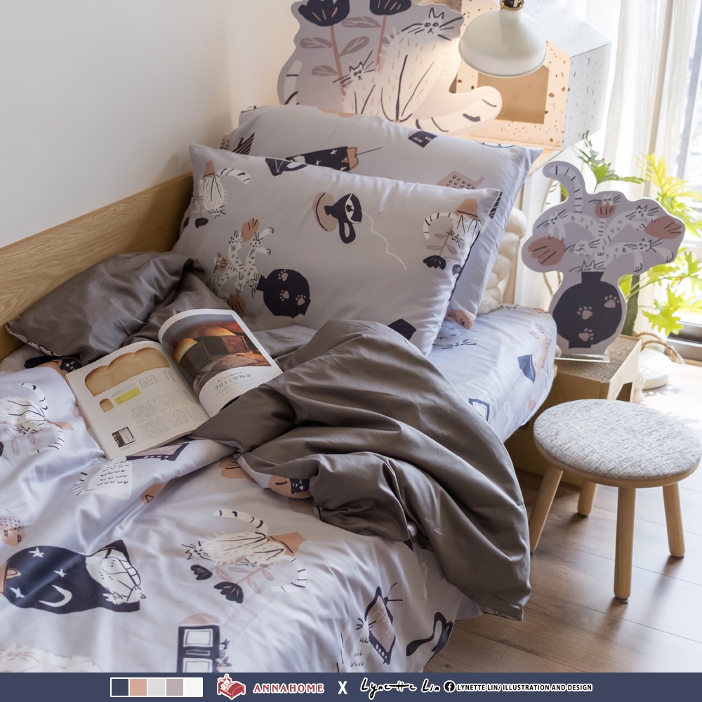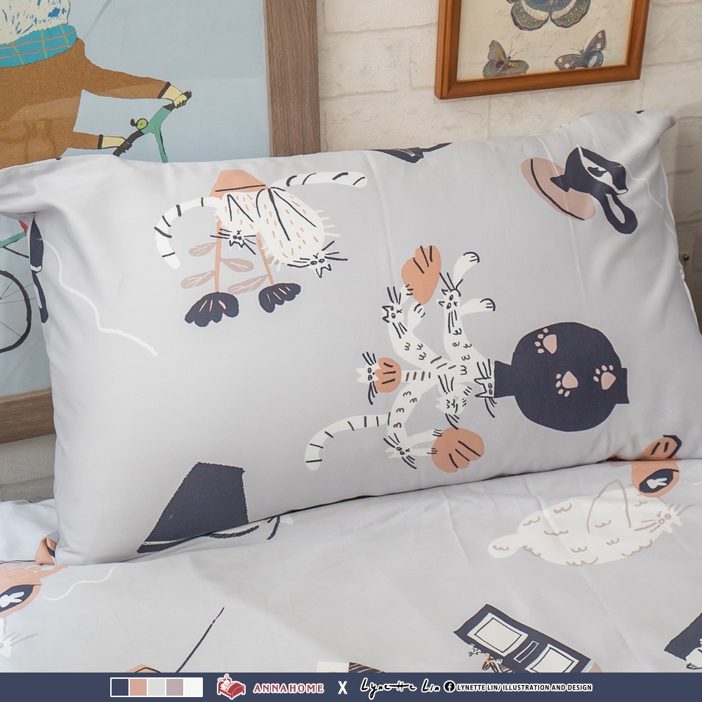 棉床本舖 貓咪盆栽 枕頭套 60支精梳棉 柔軟升級 100%純棉 台灣製 細緻透氣首選