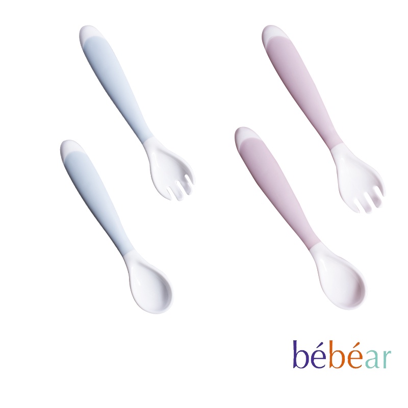 Bebear 抱抱熊 學食彎叉勺套組 嬰兒湯匙 嬰兒叉子 嬰兒用品 湯匙 叉子 可彎曲 餐具組