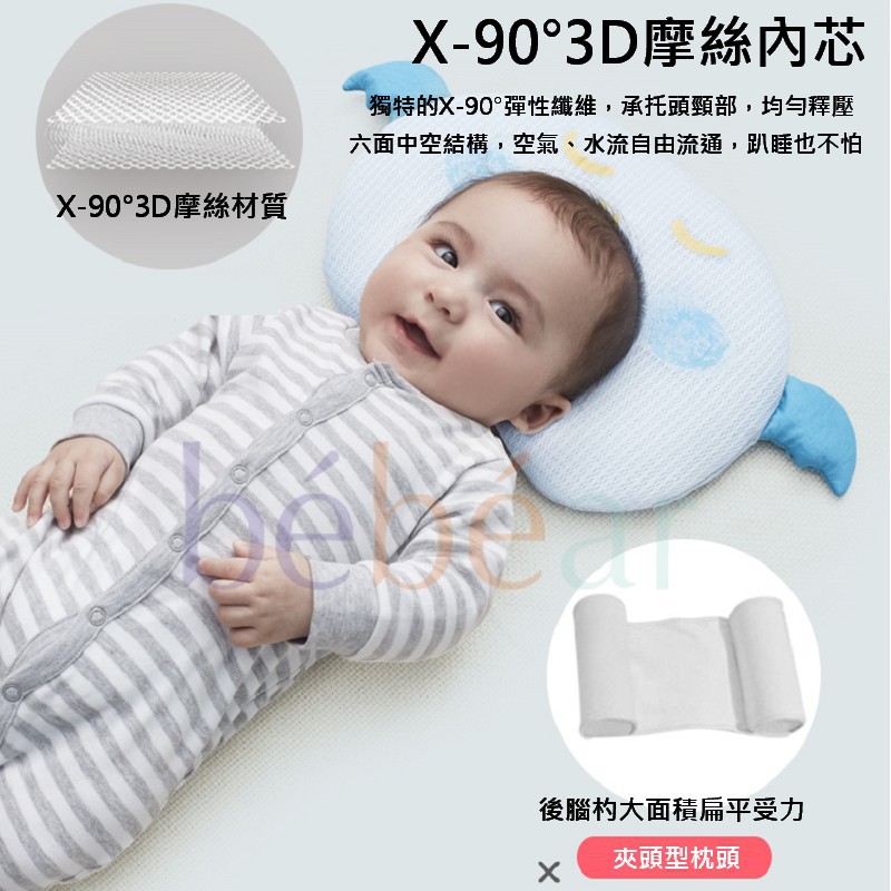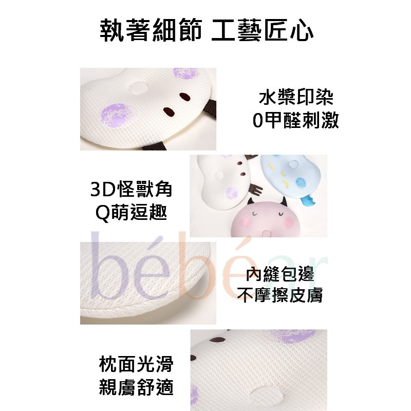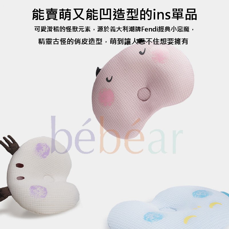 BEBEAR 抱抱熊小怪獸天絲定型枕 凹槽緩坡設計 90度3D 嬰兒枕頭 新生兒預防偏頭 睡出好頭型 初生寶寶枕頭