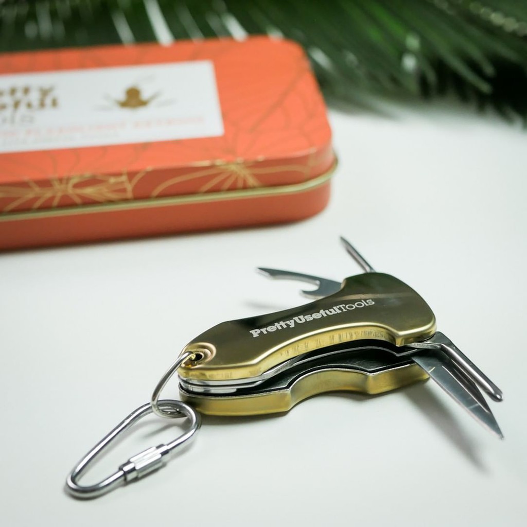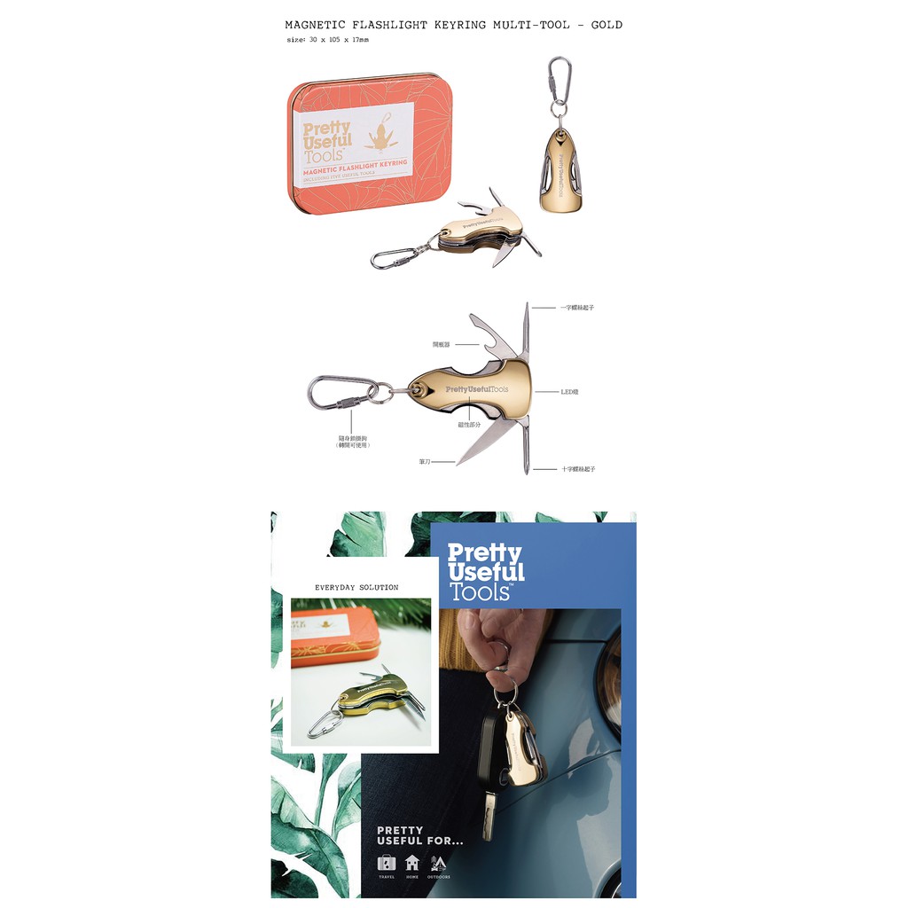 【Pretty Useful Tools】金色 5合1多功能LED隨身鑰匙圈手電筒-附磁