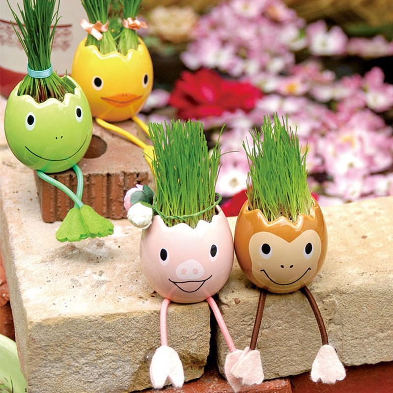 【福利品特賣會】Animals 動物髮蛋植栽盆器 / 黑麥草 (聖新陶芸/日本正版授權/黑麥草/植栽)