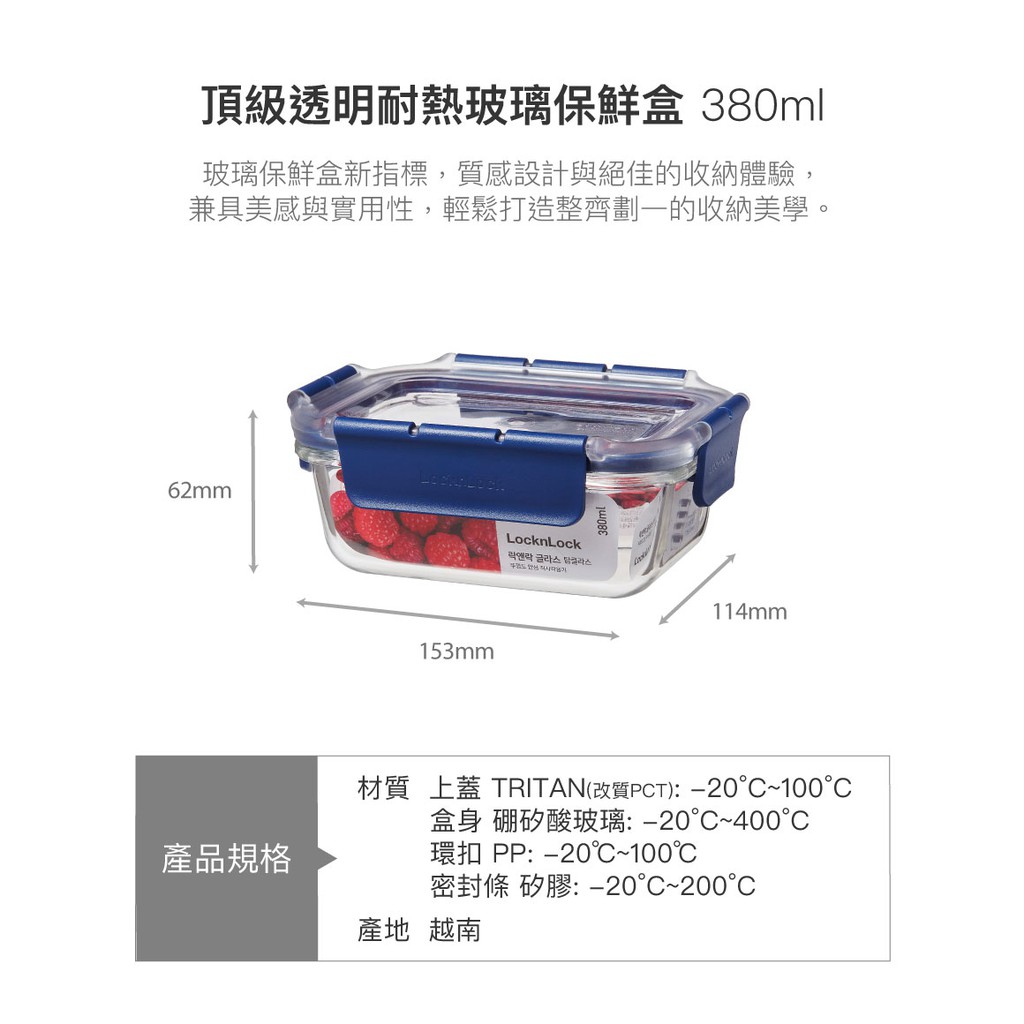 【樂扣樂扣】頂級透明耐熱玻璃保鮮盒/380ML/長方形