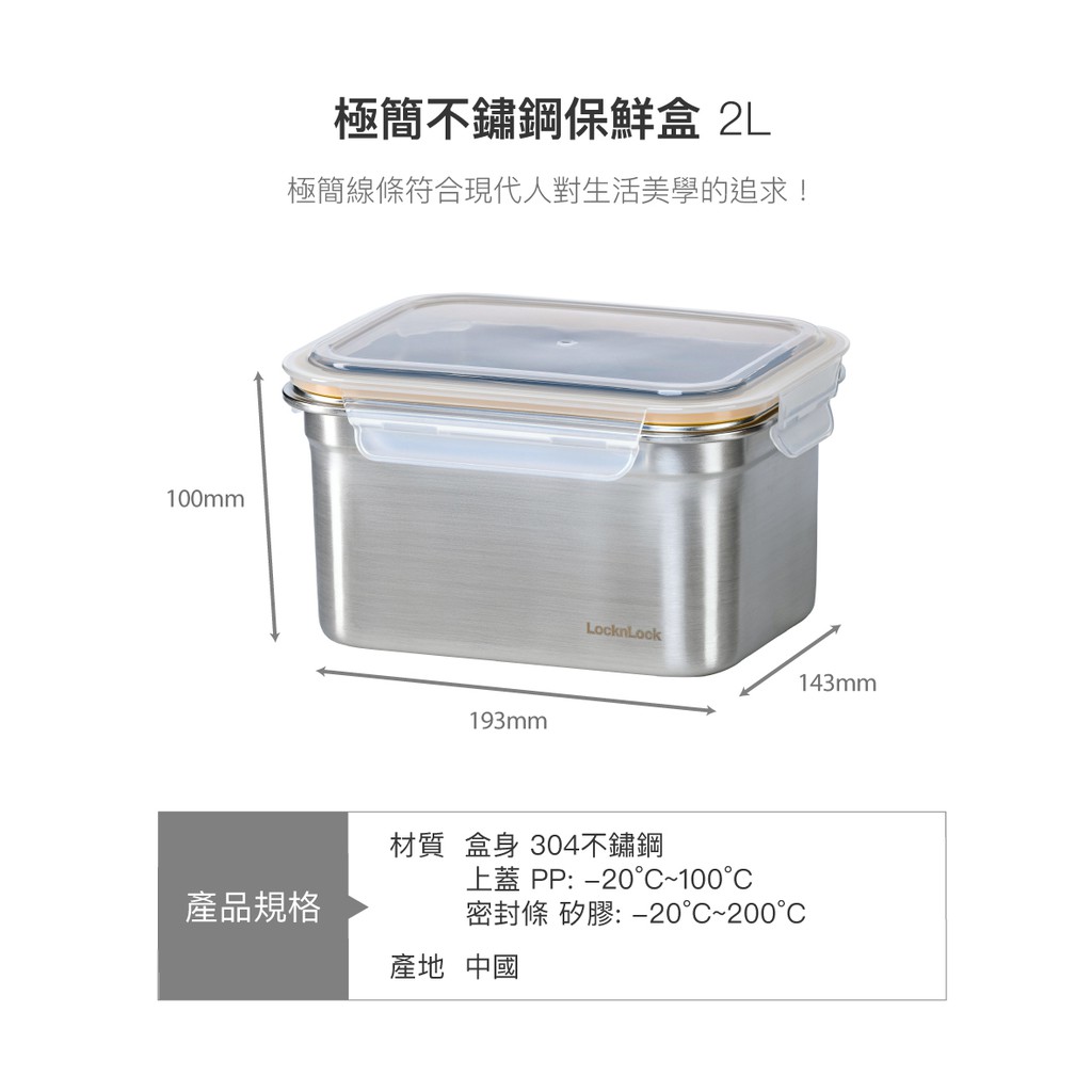 【樂扣樂扣】極簡不鏽鋼保鮮盒/2L