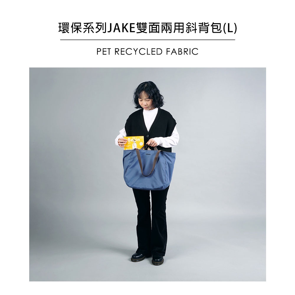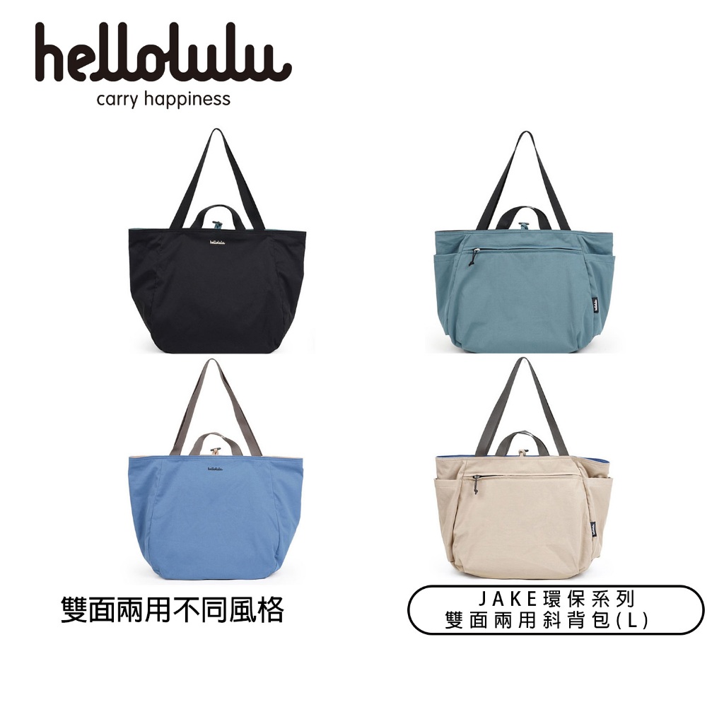 (出清商品)Hellolulu 環保系列JAKE雙面兩用斜背包(L) 黑/雲杉綠:經典藍/土褐