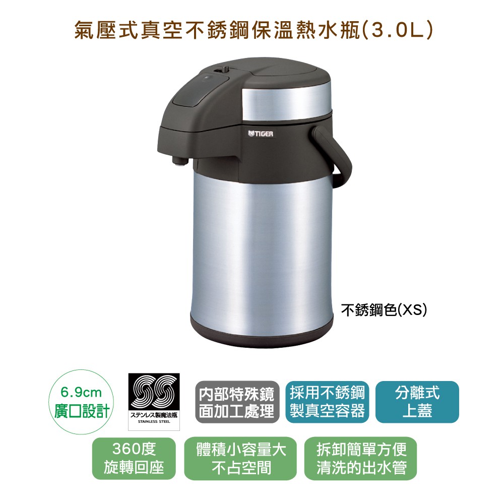 TIGER虎牌 3.0L桌上型氣壓式不鏽鋼保溫瓶(MAA-A302)