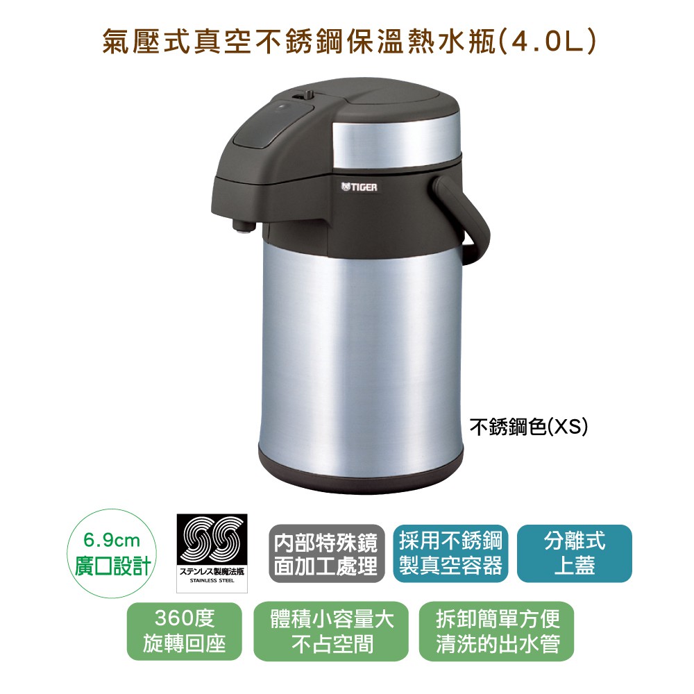 TIGER虎牌 4.0L桌上型氣壓式不鏽鋼保溫瓶(MAA-A402)