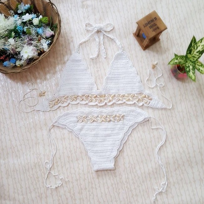 歐美性感比基尼泳衣 純手工針織泳裝 貝殼比基尼 二件式比基尼 U04 天使衣裳