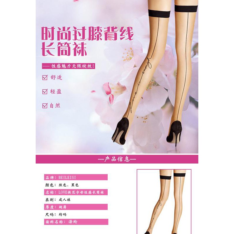 性感高筒絲襪 love提花字母后豎線超薄長筒絲襪 情趣內衣 配件 角色扮演 C191 天使衣裳
