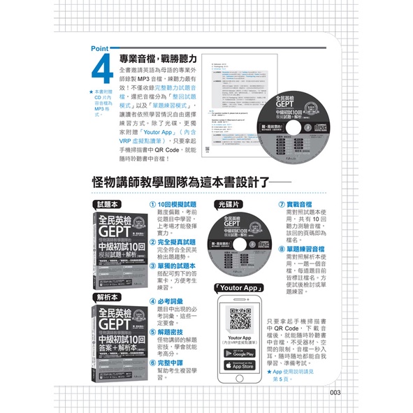怪物講師教學團隊的GEPT全民英檢中級初試10回模擬試題+解析【增修版】(Youtor App內含VRP虛擬點讀筆)/怪物講師教學團隊(台灣)我識出版教育集團 官方直營店