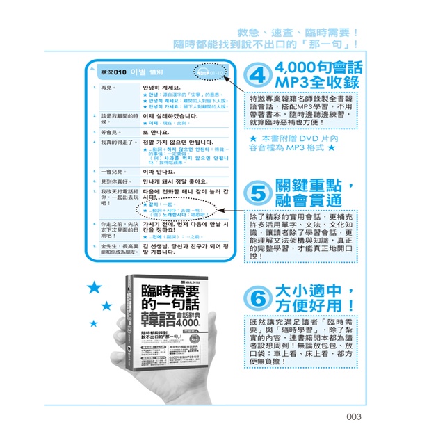 臨時需要的一句話:韓語會話辭典4,000句(附1MP3+防水書套)/閔敬順 我識出版教育集團 官方直營店