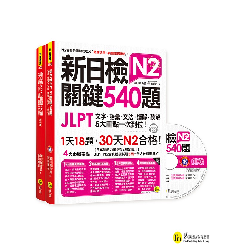 新日檢JLPT N2關鍵540題(5回全真模擬試題+解析兩書+CD)/ 濱川真由美、前田美紀 我識出版教育集團 官方直營店