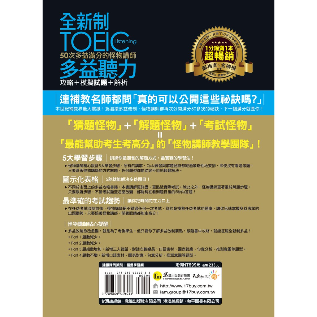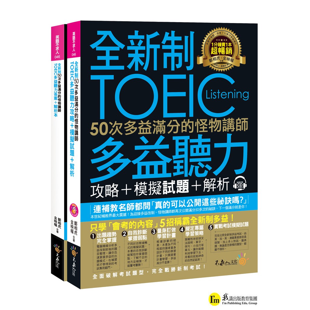 全新制50次多益滿分的怪物講師TOEIC多益聽力攻略+模擬試題+解析(2書+1CD+防水書套)/鄭相虎 金映權 我識出版教育集團 官方直營店