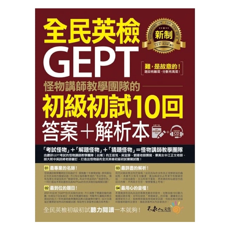 怪物講師教學團隊的GEPT全民英檢初級初試10回模擬試題+解析(2書+整回/單題雙模式MP3+VRP虛擬點讀筆App)/怪物講師教學團隊(台灣), 王筱筑, 吳宜錚, 劉婕 我識出版教育集團 官方直營店