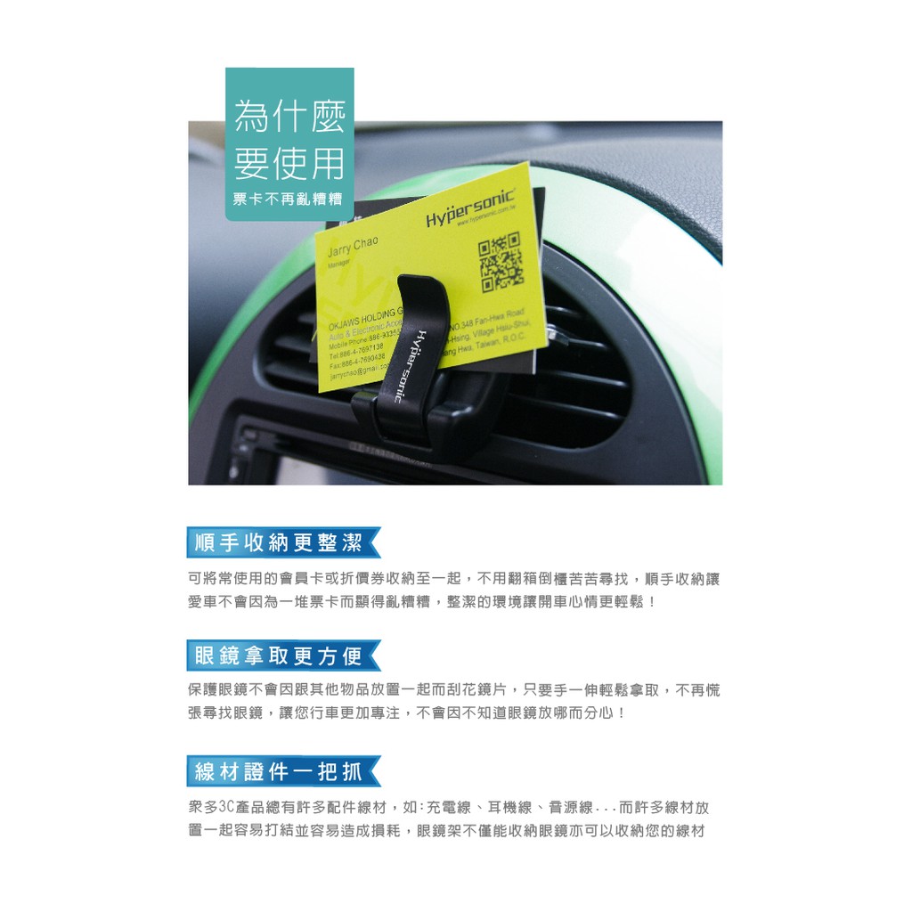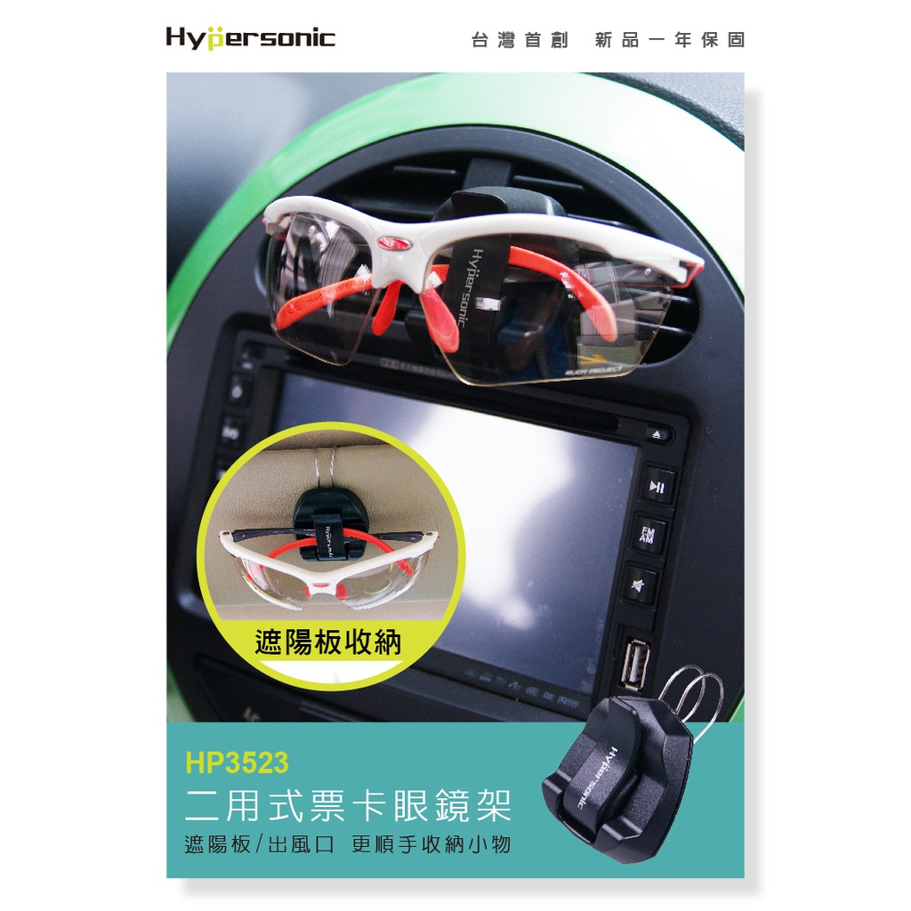 Hypersonic台灣現貨 汽車用眼鏡置物架/HP3523(1入) 名片 票卡 遮陽板 冷氣口 出風口 太陽眼鏡收納