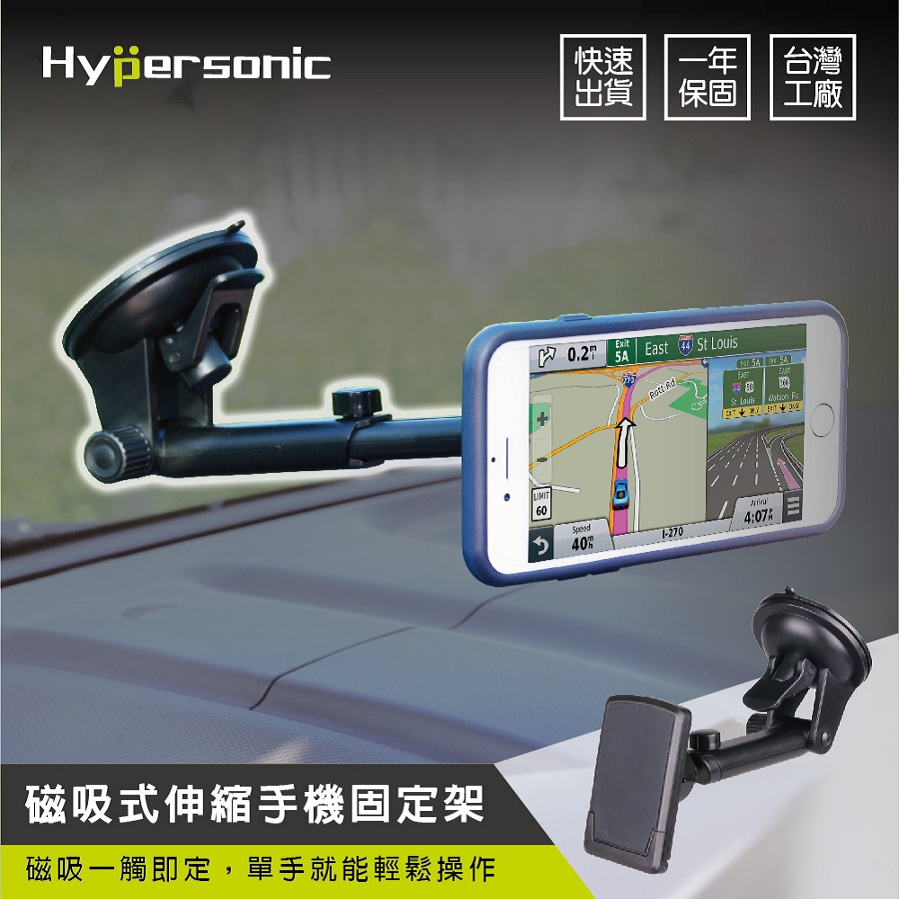 Hypersonic 台灣現貨 發財車/露營車推薦/汽車用磁吸式伸縮手機固定架/HPA502(1入)