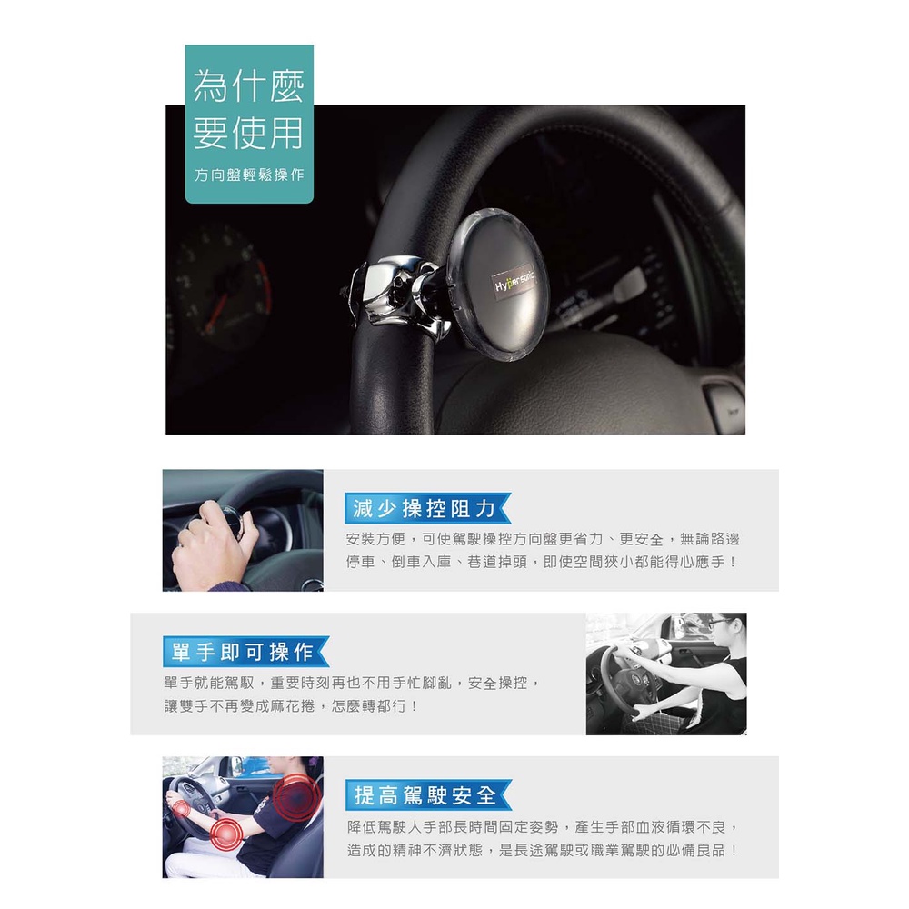 Hypersonic 職業推薦買台灣現貨 國外運將推薦加大底座汽車方向盤轉輪/HP2489黑(1入) 轉輪 方向輔助工具