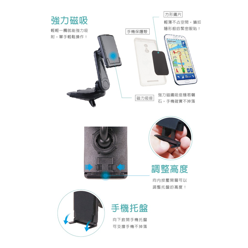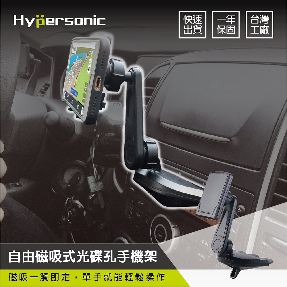 Hypersonic台灣現貨 汽車用光碟CD孔強力磁吸式固定手機架/HPA588(1入)