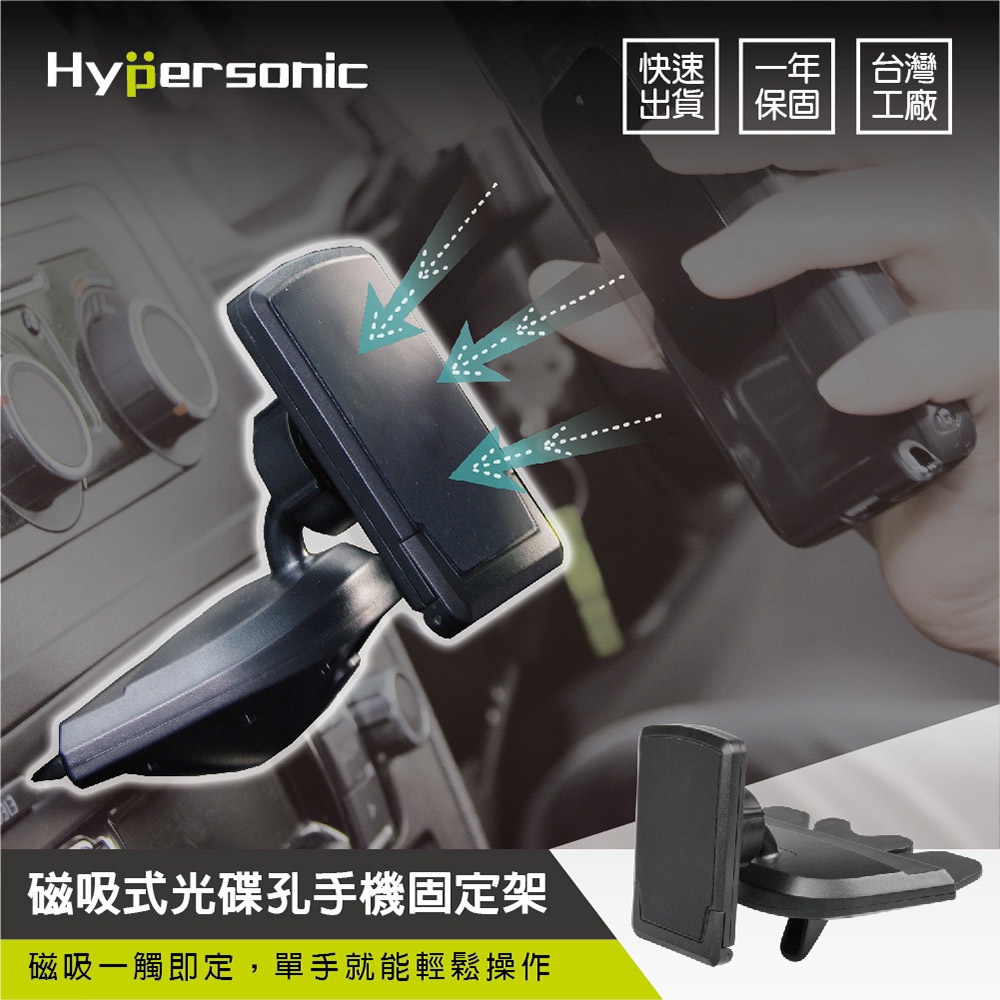 Hypersonic台灣現貨 汽車用磁吸式光碟孔手機固定架/HPA585(1入)導航用