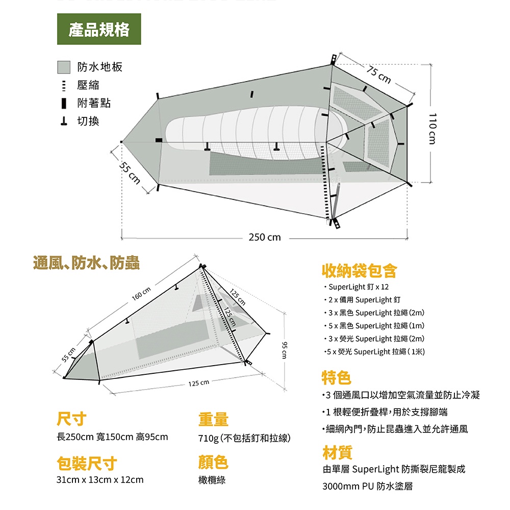 DD Hammocks 超輕量 化登山單人帳 橄欖綠 DD-TNT-OG1 正版 台灣 總代理 公司貨