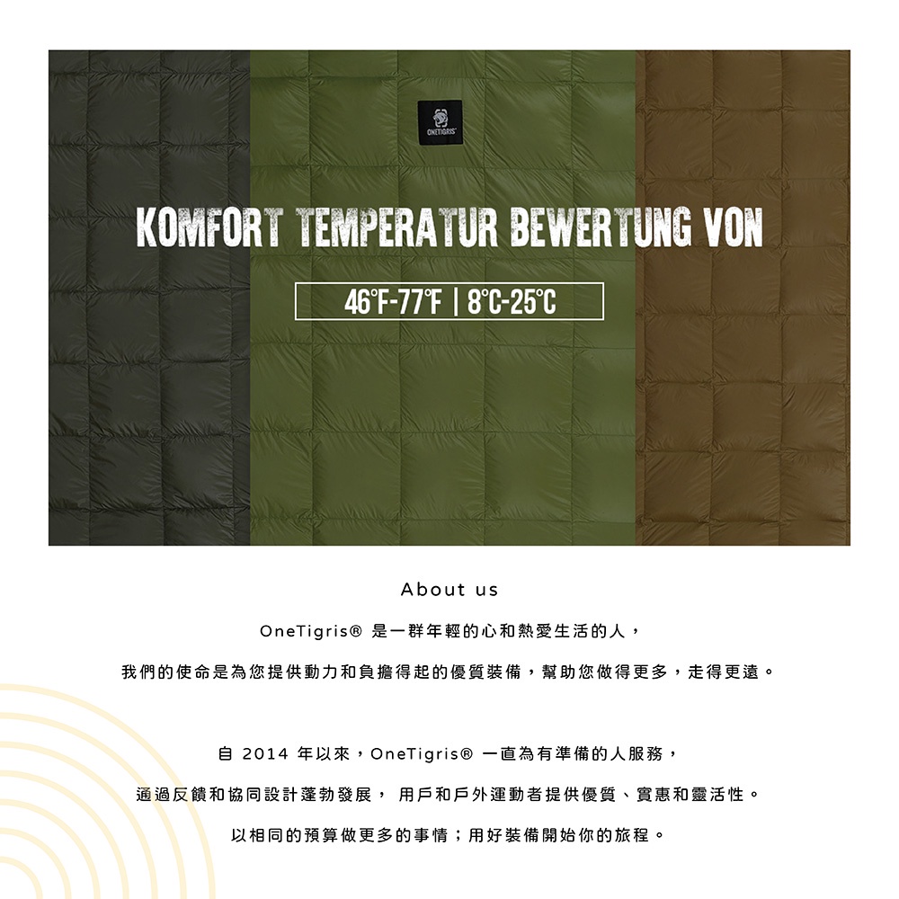ONETIGRIS 戶外羽絨披肩斗篷保暖被 遊俠綠 2.0 雙人/CE-YBZ05-RG 正版 台灣 總代理 公司貨