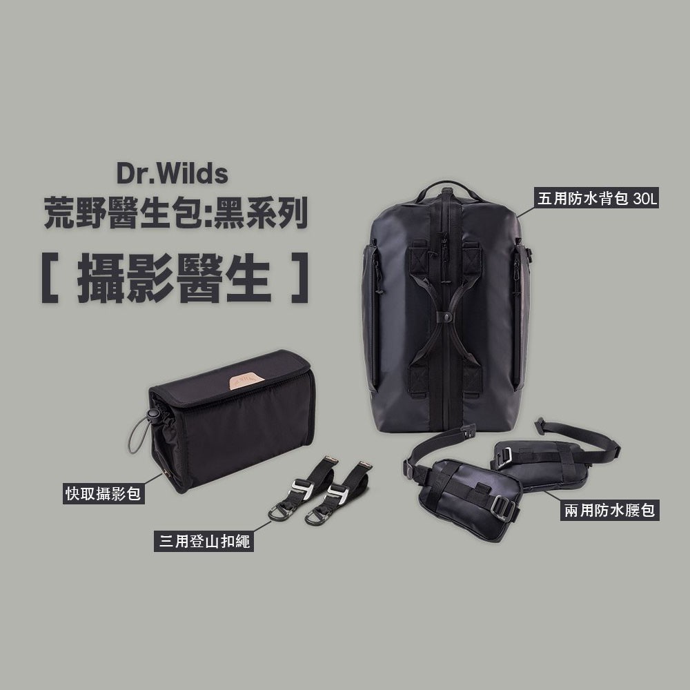 Dr.Wilds 荒野醫生包 黑系列 攝影醫生組 騎士後背包 主包+快取攝影包+腰包