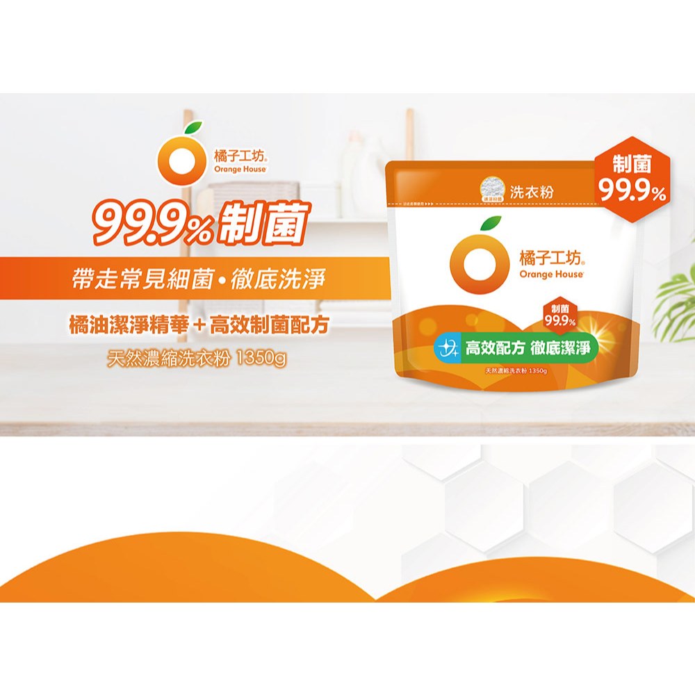 橘子工坊 衣物清潔類天然濃縮洗衣粉-制菌力1350g環保包x6包/箱