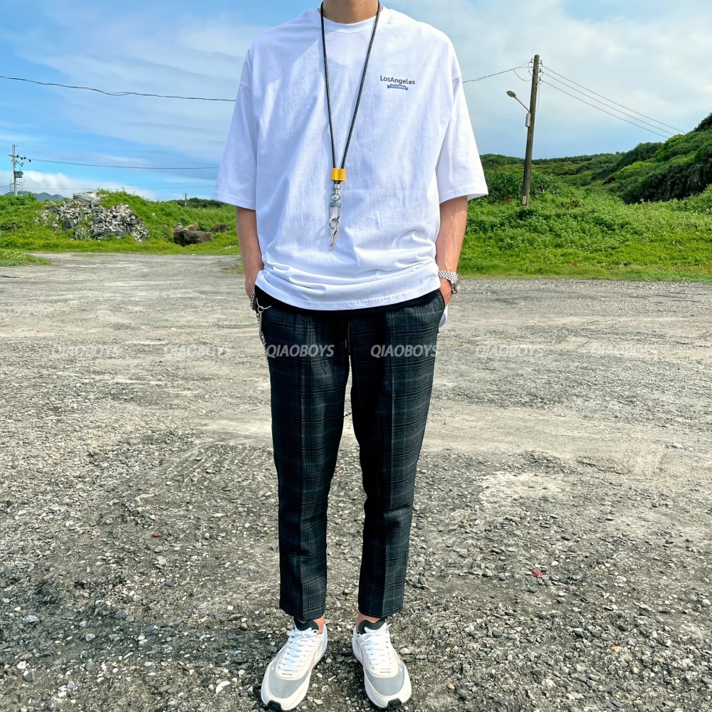 QIAO 韓國新貨 微紳士格紋褲 秋季新品 彈性面料 鬆緊褲頭 上寬下窄 格子 休閒褲 長褲 格紋 韓國褲 男生長褲