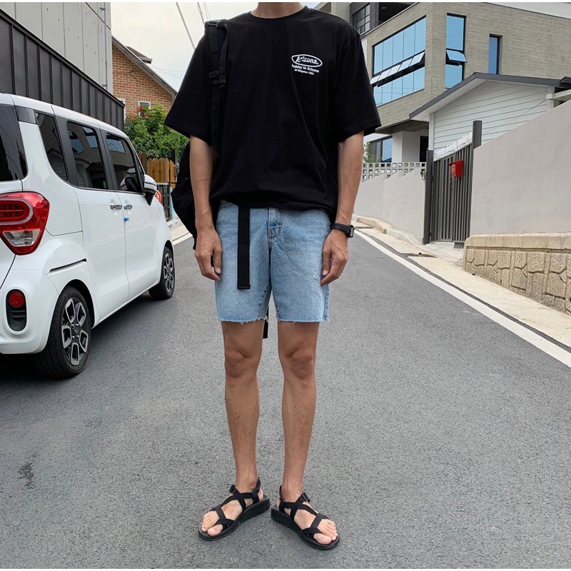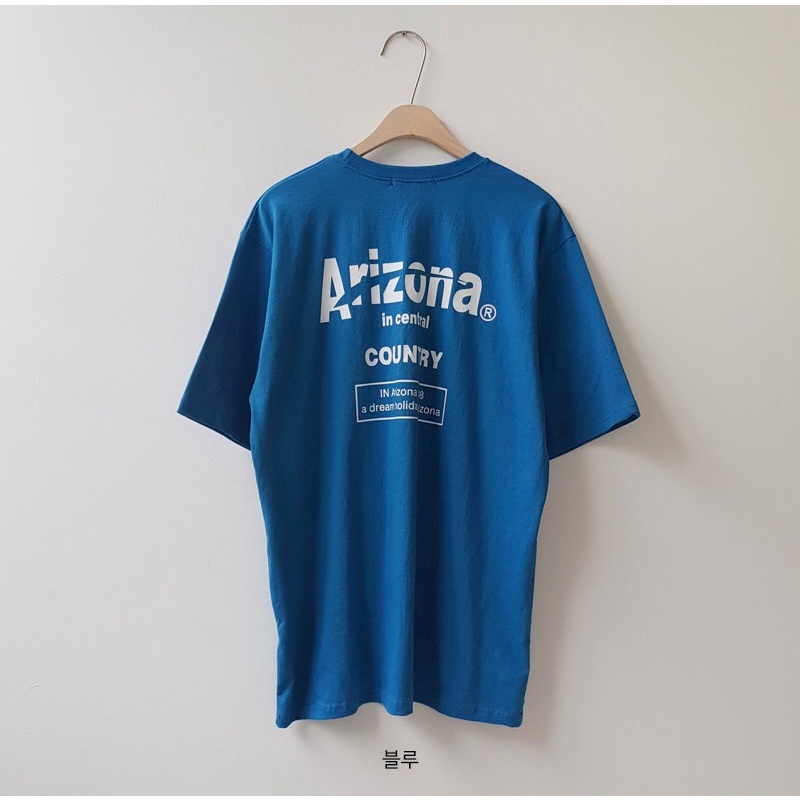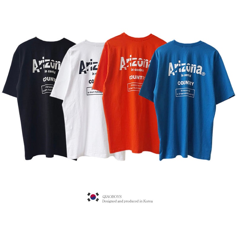 QIAO 韓國新貨 Arizona 休閒城市 印刷 落肩T 高挺細絨棉 五分T 韓國短T 寬鬆 上衣 短袖 T恤 男短T
