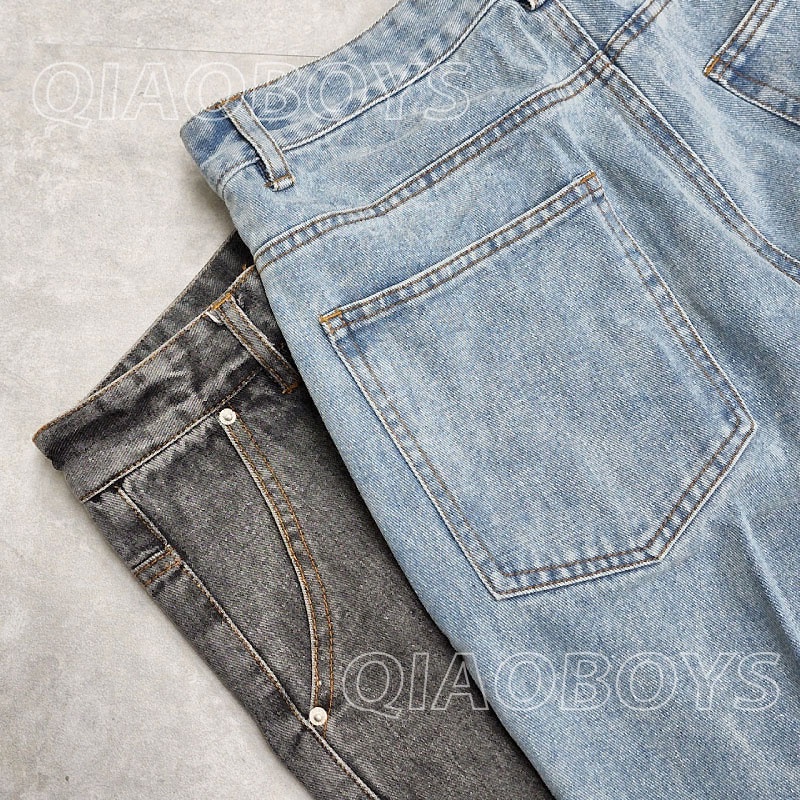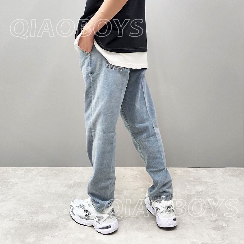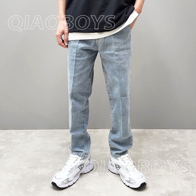 QIAO 韓國嚴選 水洗 丹寧 牛仔褲 休閒 洗舊 洗淺 長褲 牛仔褲男 淺色牛仔褲 韓國牛仔褲 男休閒褲 黑色牛仔
