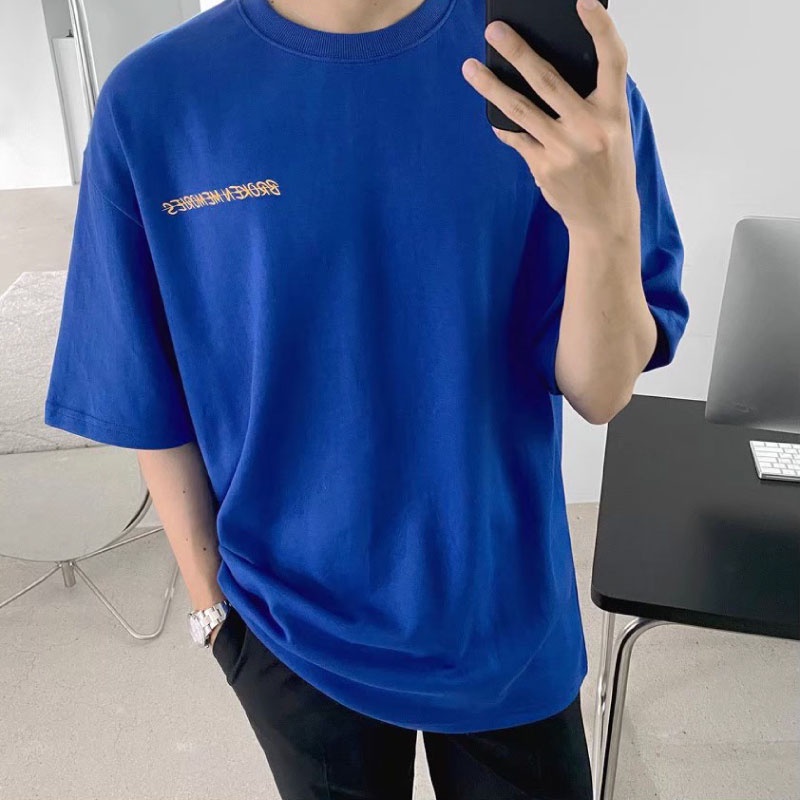 QIAO 韓國新貨 搶眼 小花拼圖 首爾流行俠 細絨棉 落肩 五分T 寬T 男生 女生 穿搭 韓國衣服 表演 約會 短袖