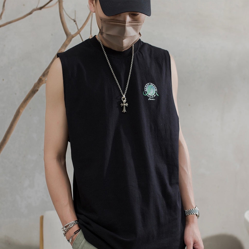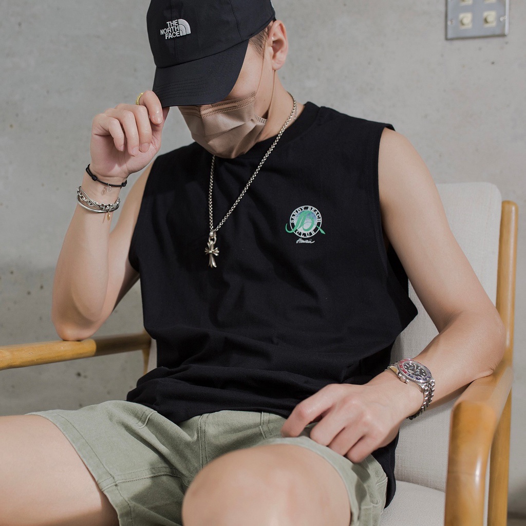 QIAO 韓國新貨 大B 紮實純棉 漸層 大B 寬肩背心 韓國背心 男背心 寬背心 背心 上衣 衣服 韓T 短袖 無袖
