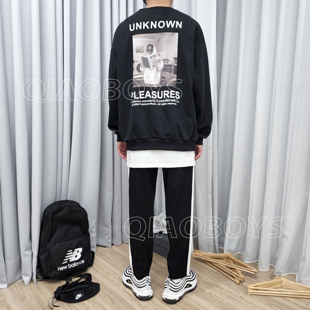 【QIAO】秋冬 雜誌風 大學T 太空棉 秋冬穿搭 韓國大學T 寬鬆 韓國男裝 男生長袖 長T 大學t 女 男裝 大學踢
