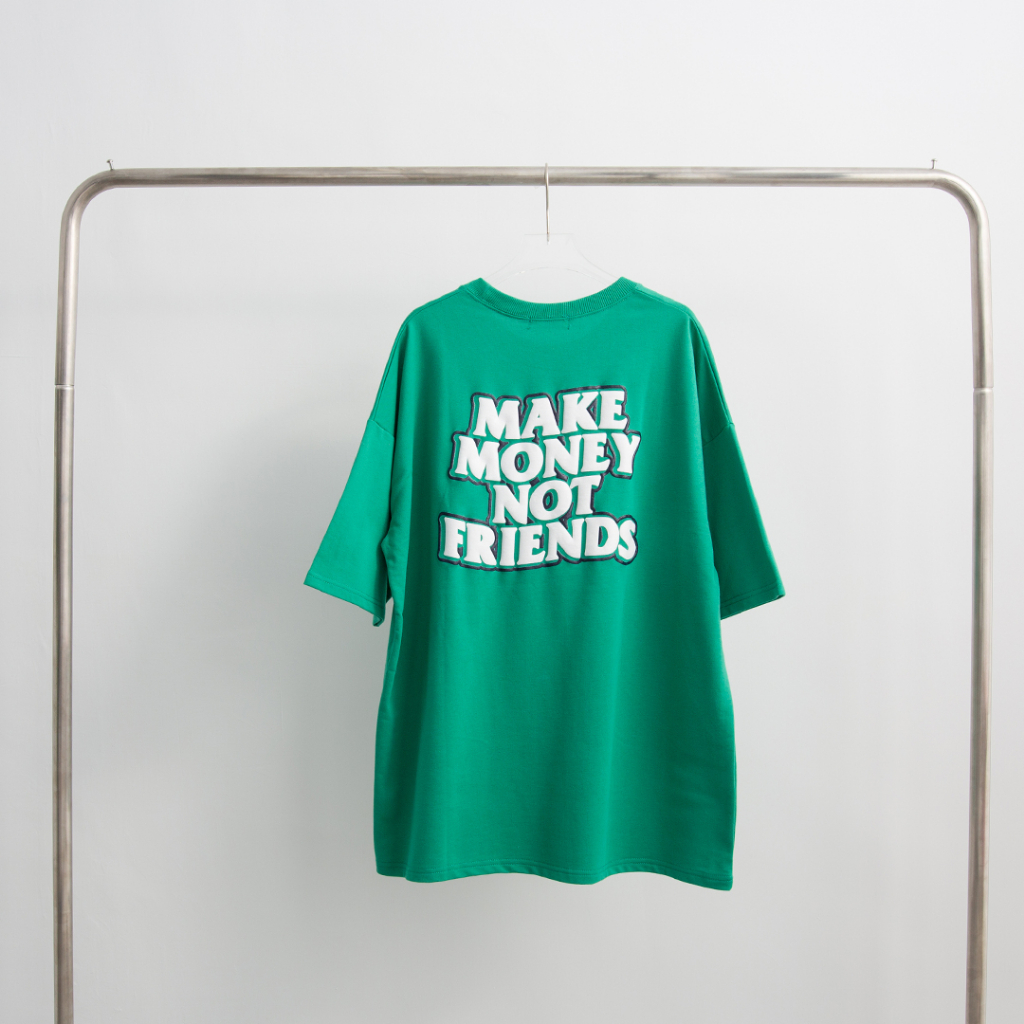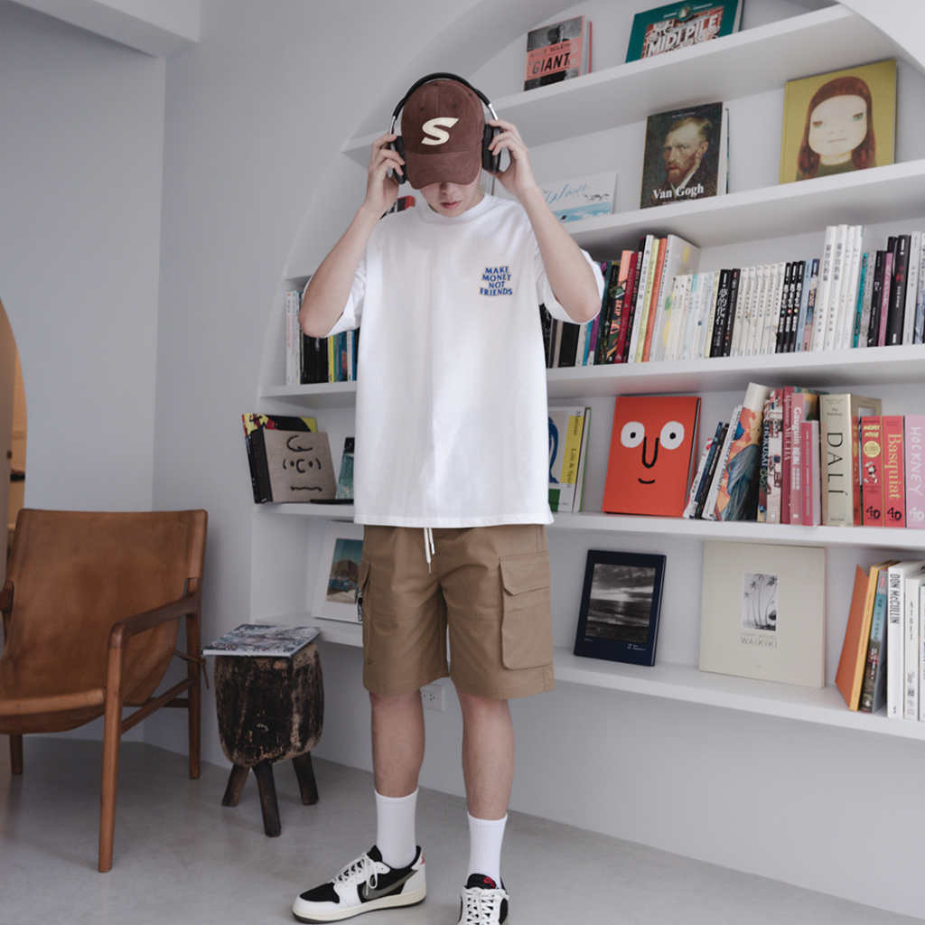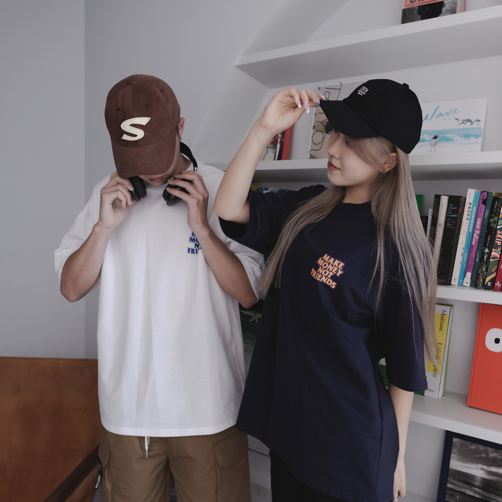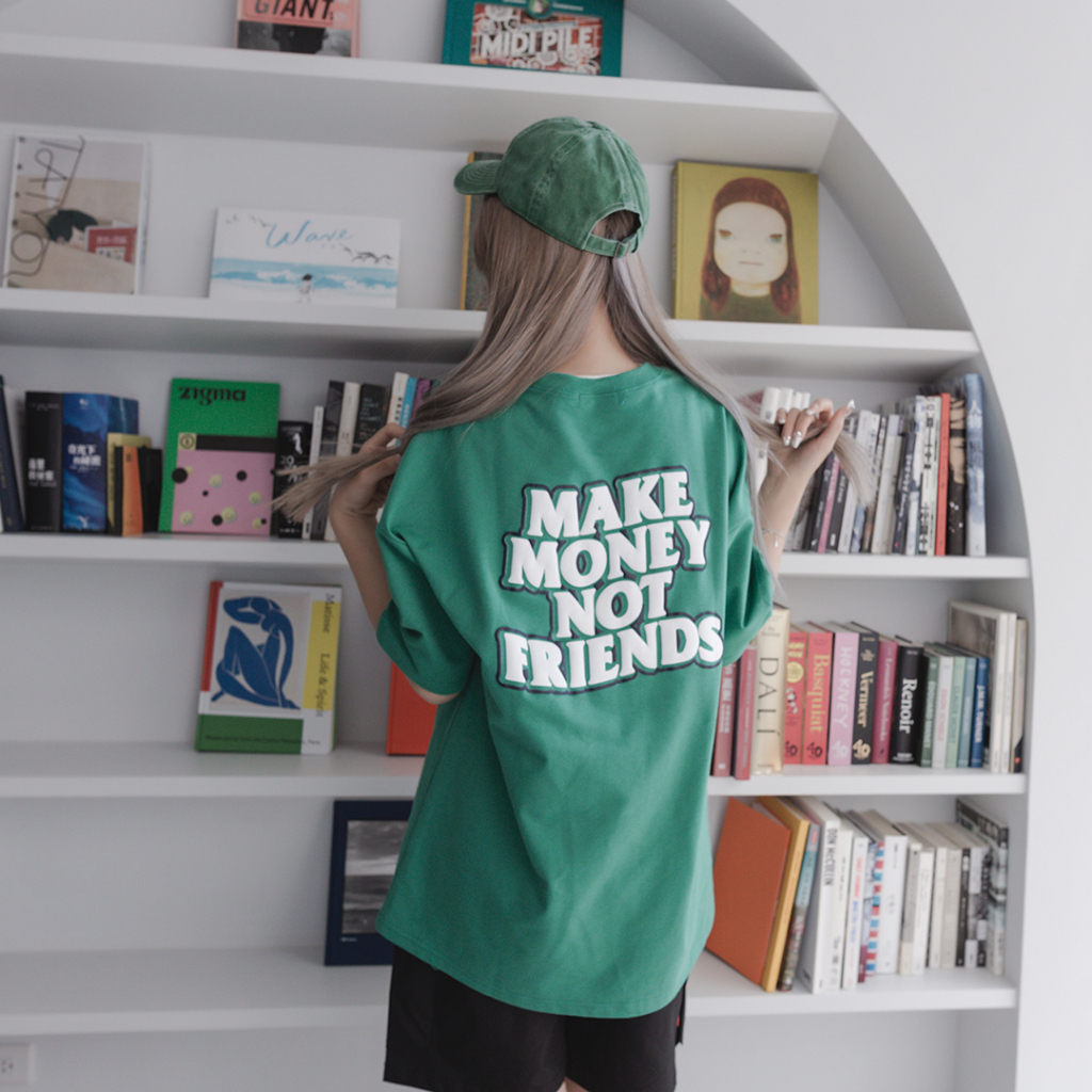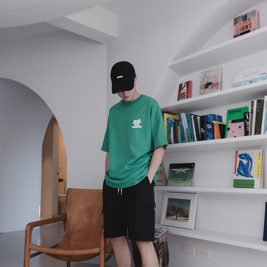 QIAO 韓國新貨 獨行者標語 立體 發泡 膠印 細絨棉 五分袖 落肩 寬鬆 OVERSIZE 短袖 情侶 韓國男裝 帥