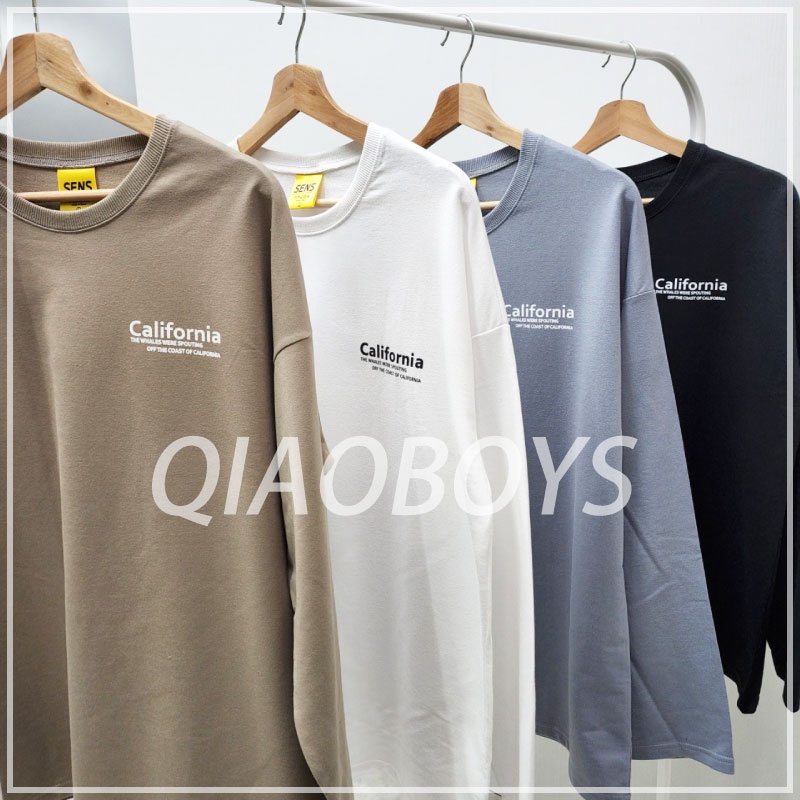 QIAO 韓國神貨 加州彩浪 長袖最帥 落肩 升級細絨棉 寬鬆T 長T 薄長 衣服 長袖男 韓 限時特賣 長袖男 T