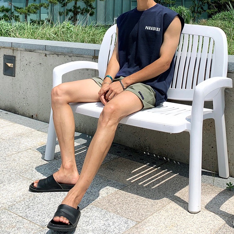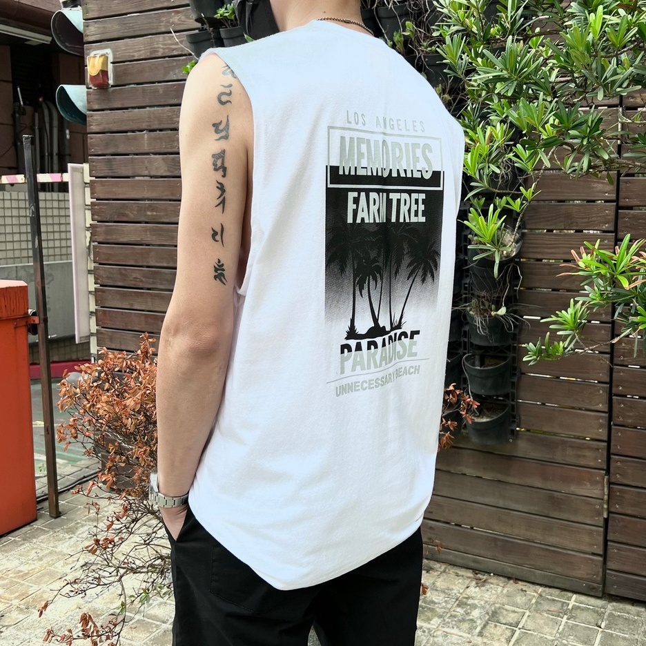 QIAO 韓國新貨 漸層棕梠 寬肩背心 海邊 露營 野營 純棉背心 男生背心 韓國背心 寬背心 戶外 穿搭 男裝背心