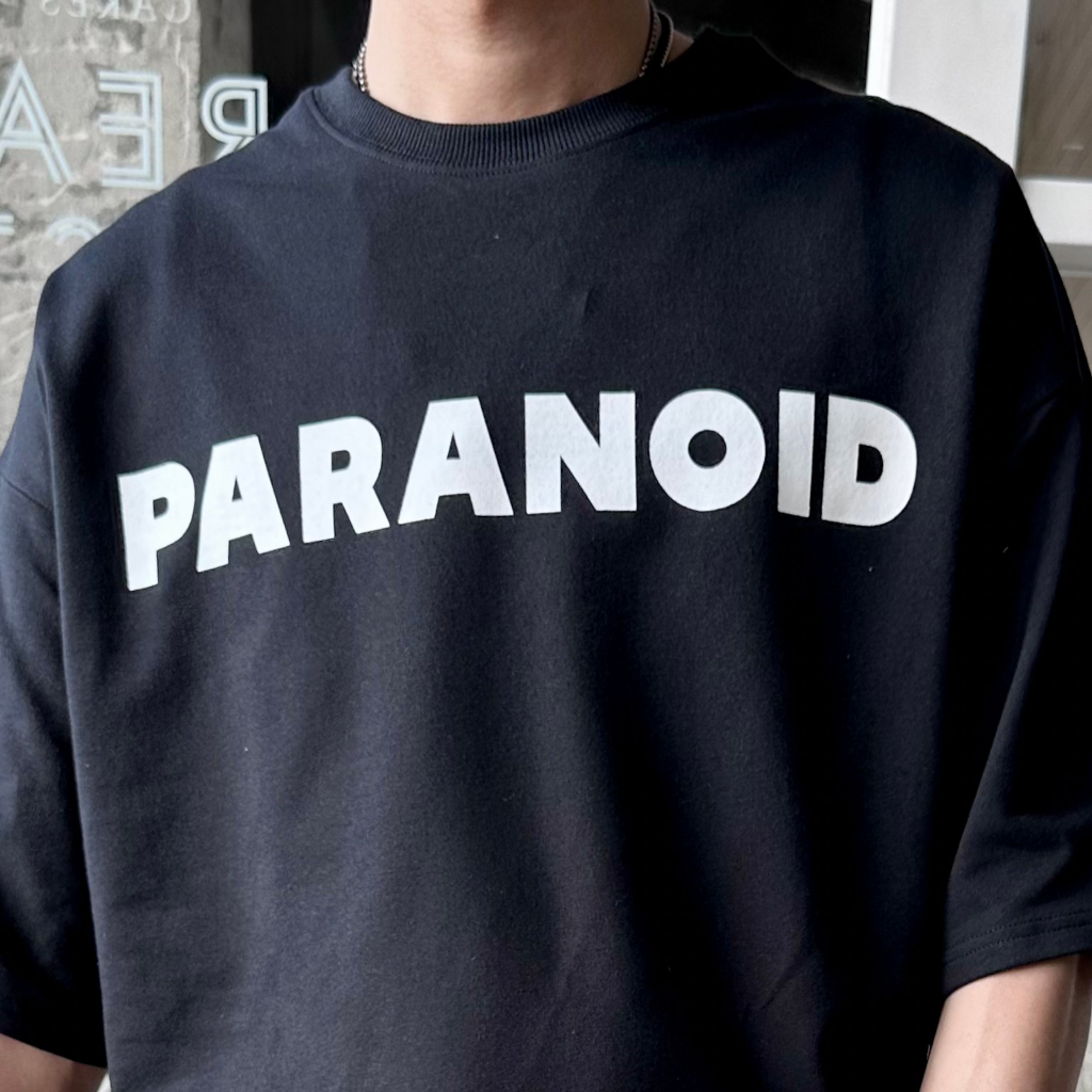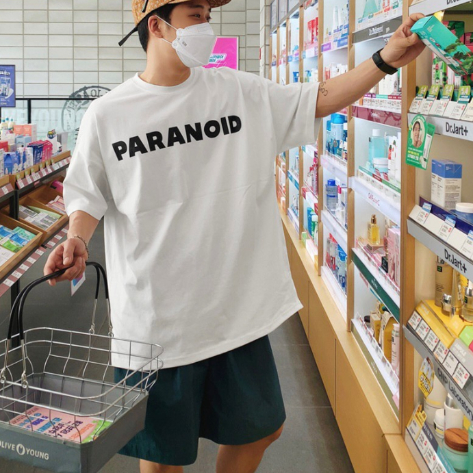 QIAO 韓國新貨 PARANOID 簡單好搭 落肩 細絨棉 寬鬆T 五分T 短T 韓國男裝 寬T 上衣 男短袖 印花T