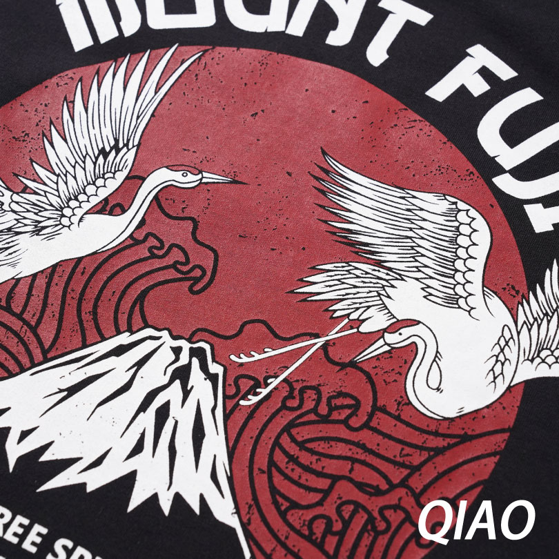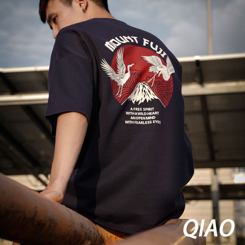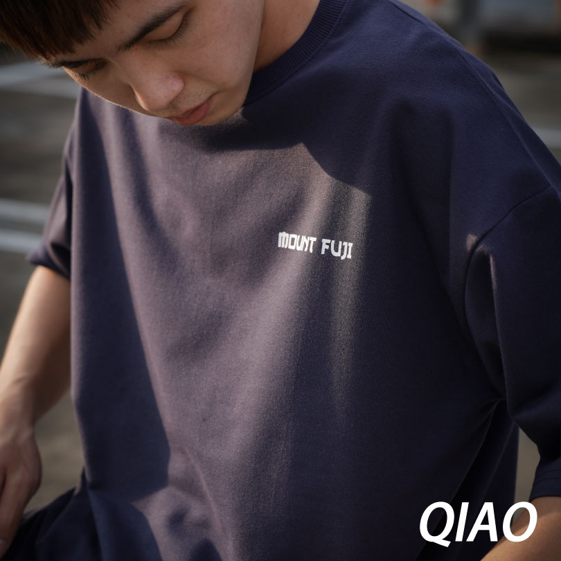 QIAO 日系FUJI富士岡 舞鶴 高磅 細絨棉 落肩 五分袖 寬鬆 T恤 短袖 短T 情侶 帥T 衣服