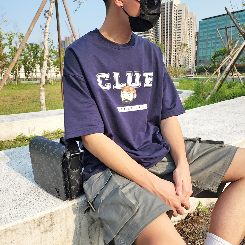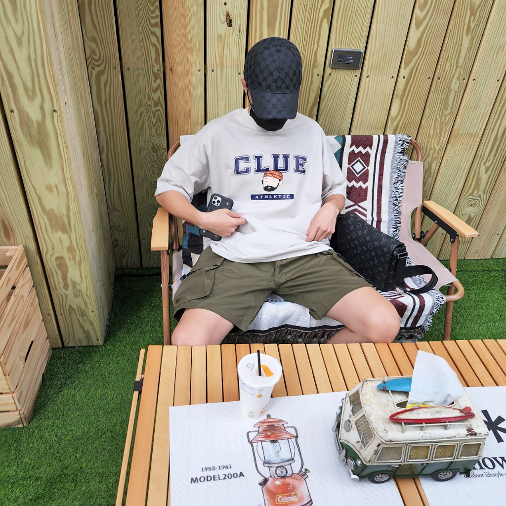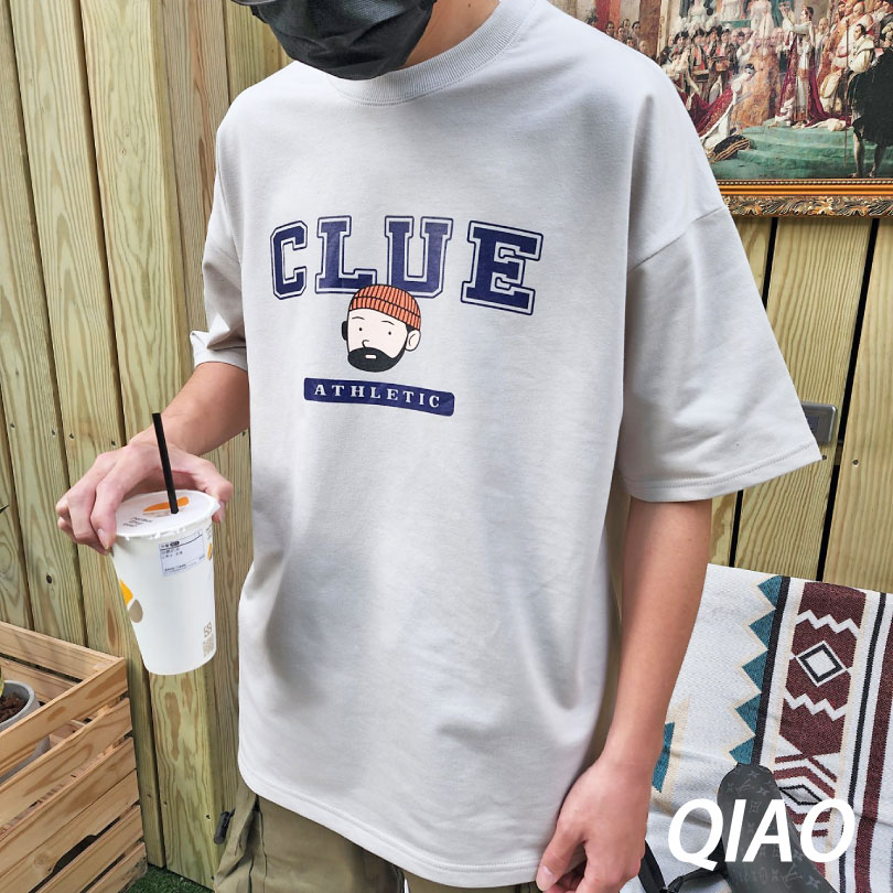 QIAO 韓國 超chill 鬍子小哥 升級細絨棉 落肩 情侶 穿搭 男友 短袖 短T 五分T 落肩T 鬍子大叔 蓋屁股