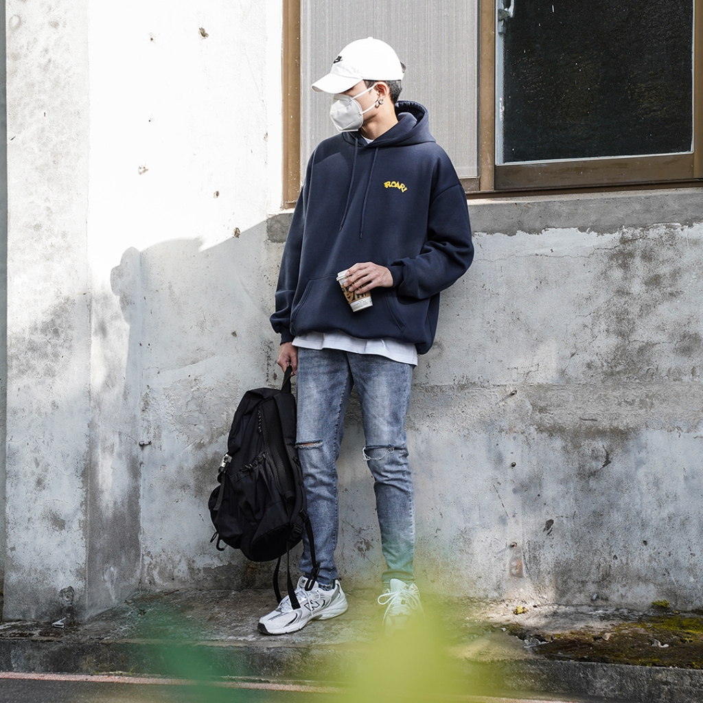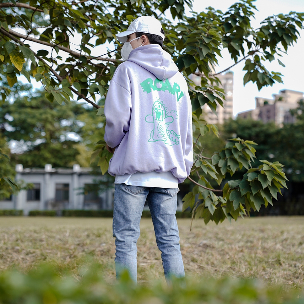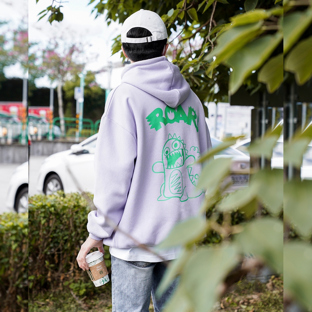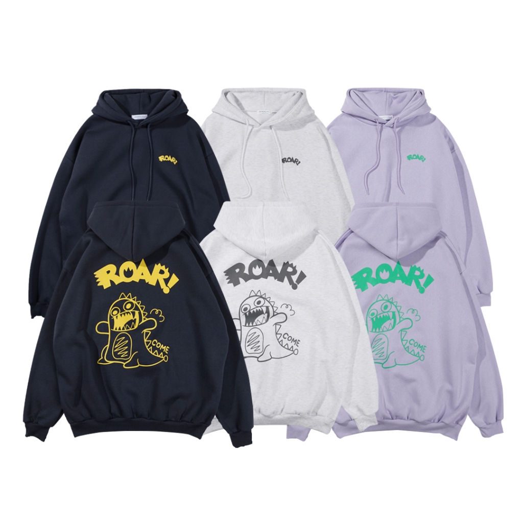 QIAO 韓國新貨 ROAR 壞恐龍 內刷毛 帽T 超寬鬆 秋冬 帽踢 落肩 男生衣服 大學T 秋冬穿搭 長袖 大學T女