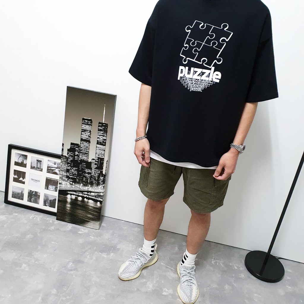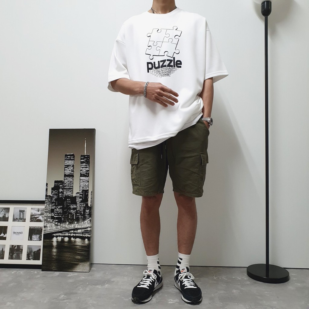 QIAO 韓國 PUZZLE 謎一般的男子 重磅 太空棉 落肩 寬鬆 五分T 男裝 韓T 韓國連線 東大 短T 厚短T