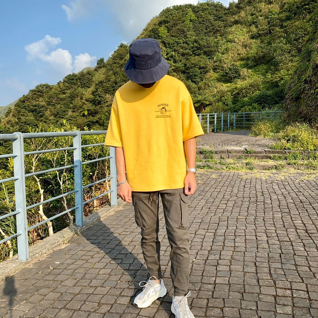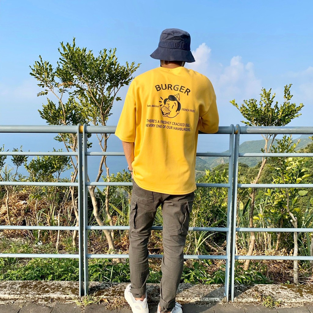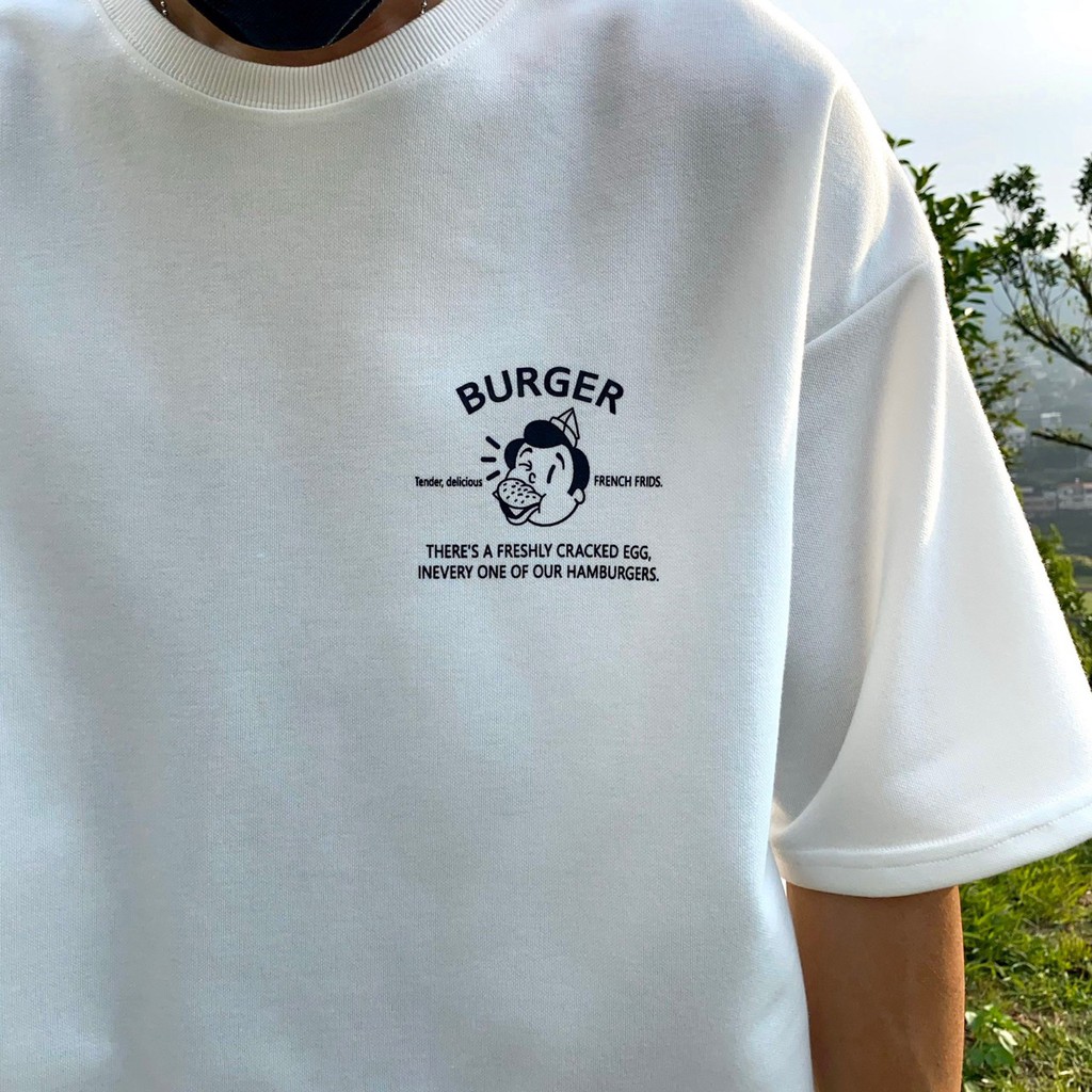【QIAO】韓國新貨 漢堡小哥 升級細絨棉 高磅 落肩 五分T 寬T 圖T 落肩T 男友衣 寬鬆T恤 男生T恤
