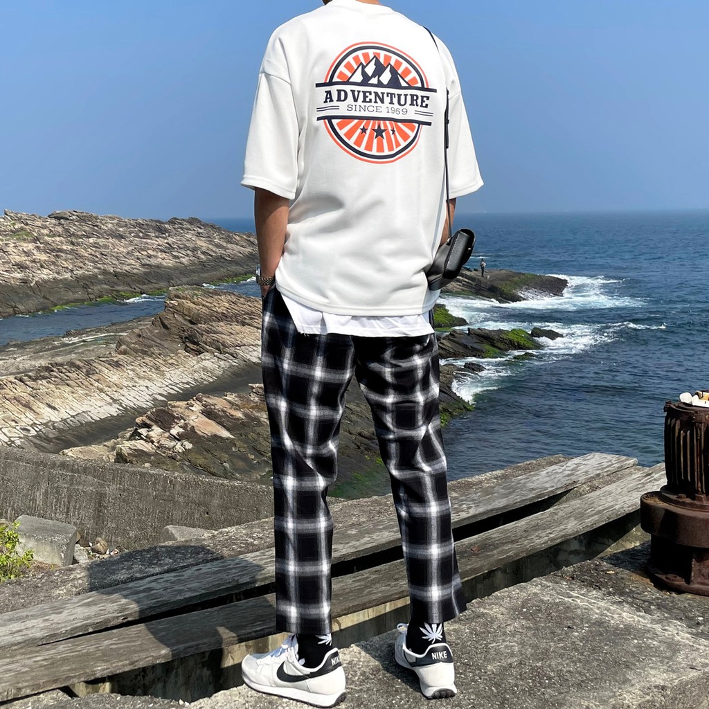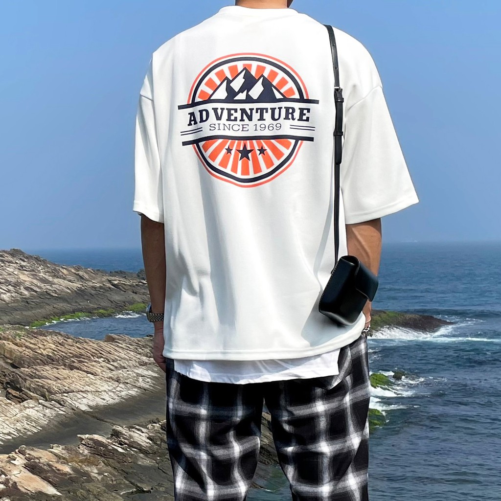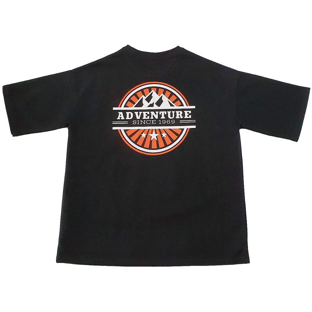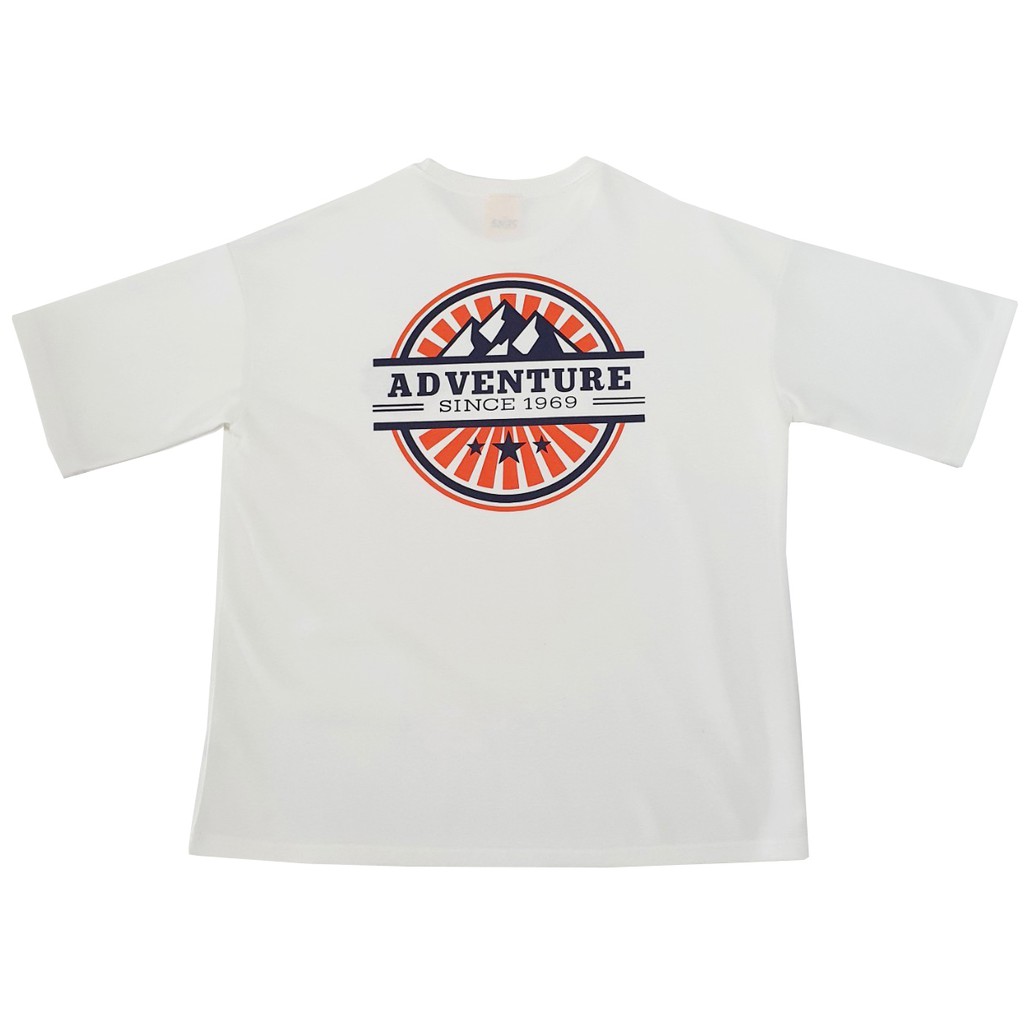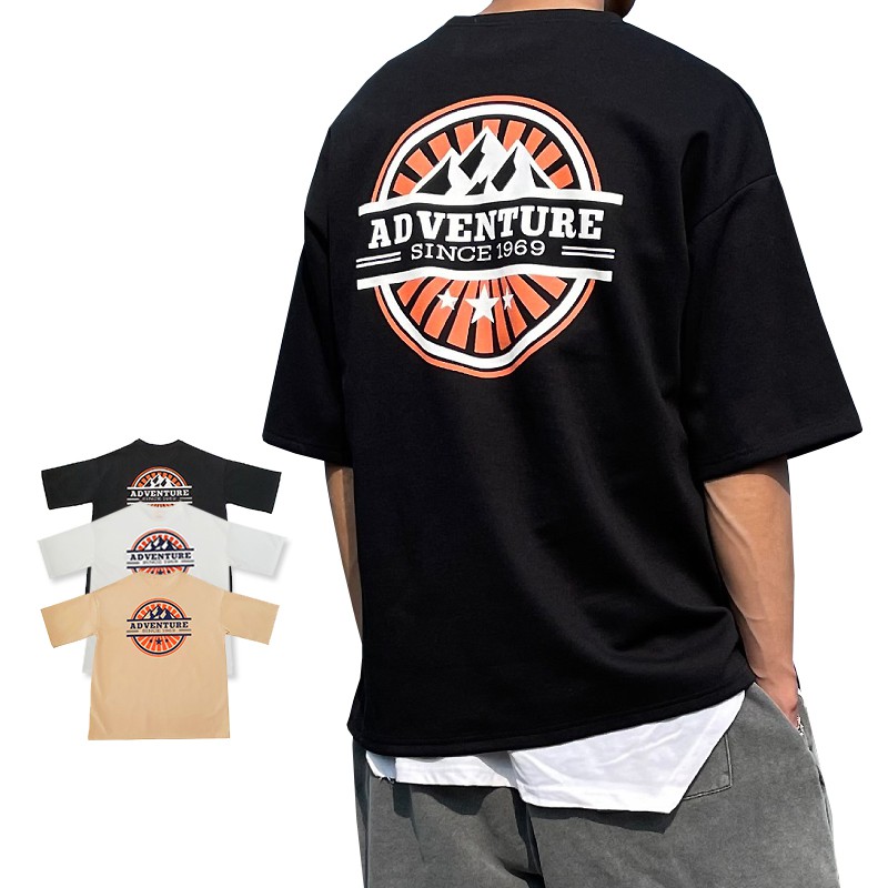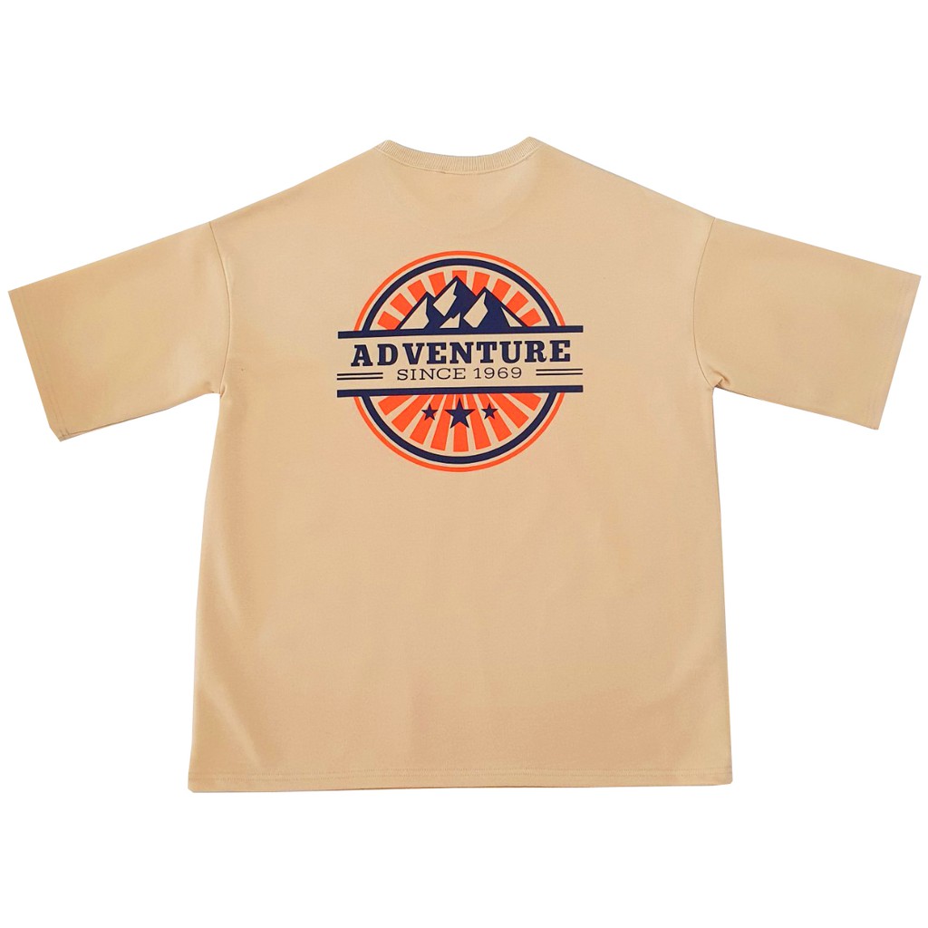 QIAO 韓國新貨 探險之王 高挺細絨棉 五分袖 寬鬆 落肩 韓國男裝 短T 短袖 圖T 男短袖 情侶 卡其色 短衣